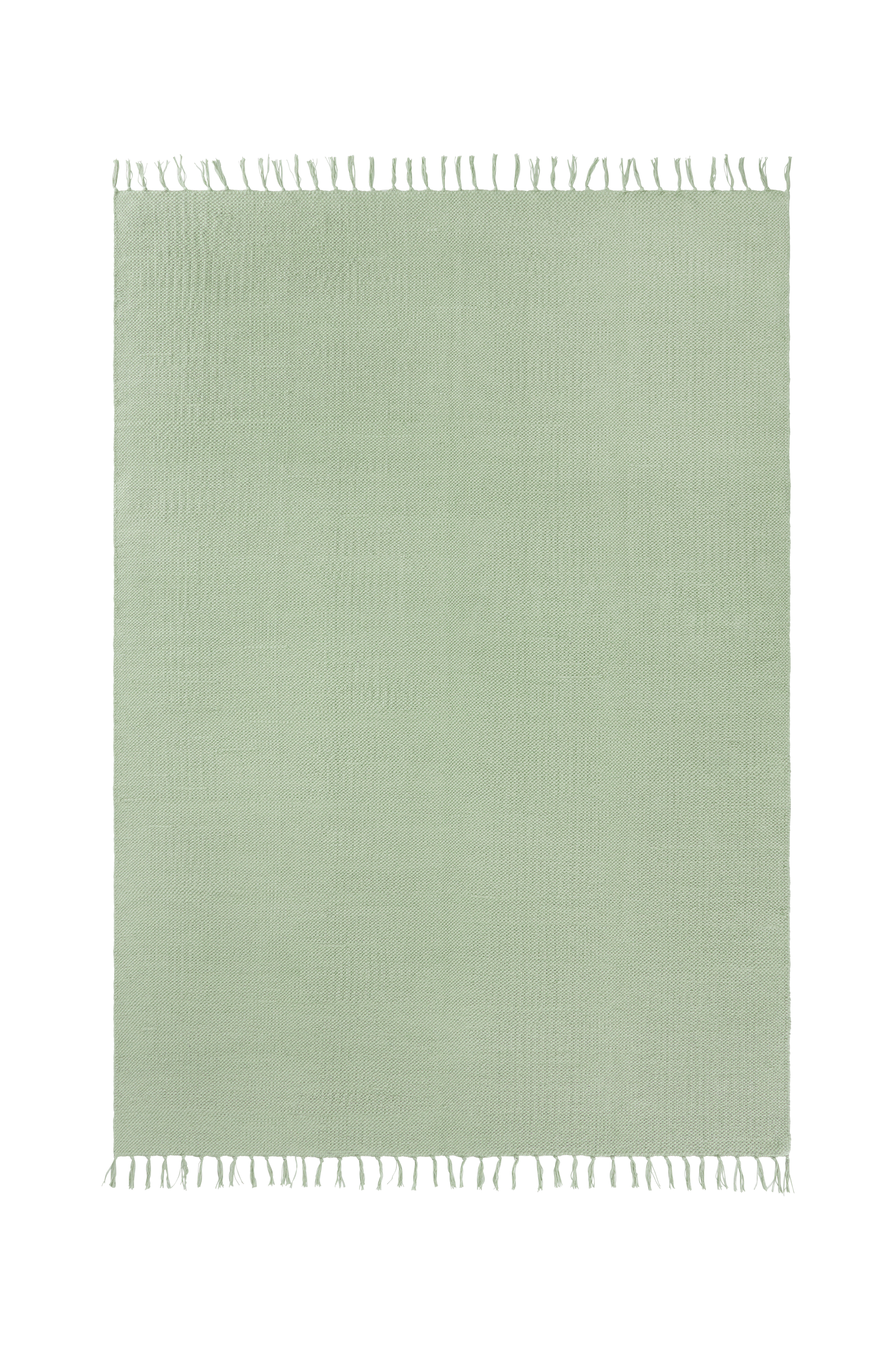 Sileä puuvillamatto, jossa värjätyt hapsut. Korkeus 0,5 cm.