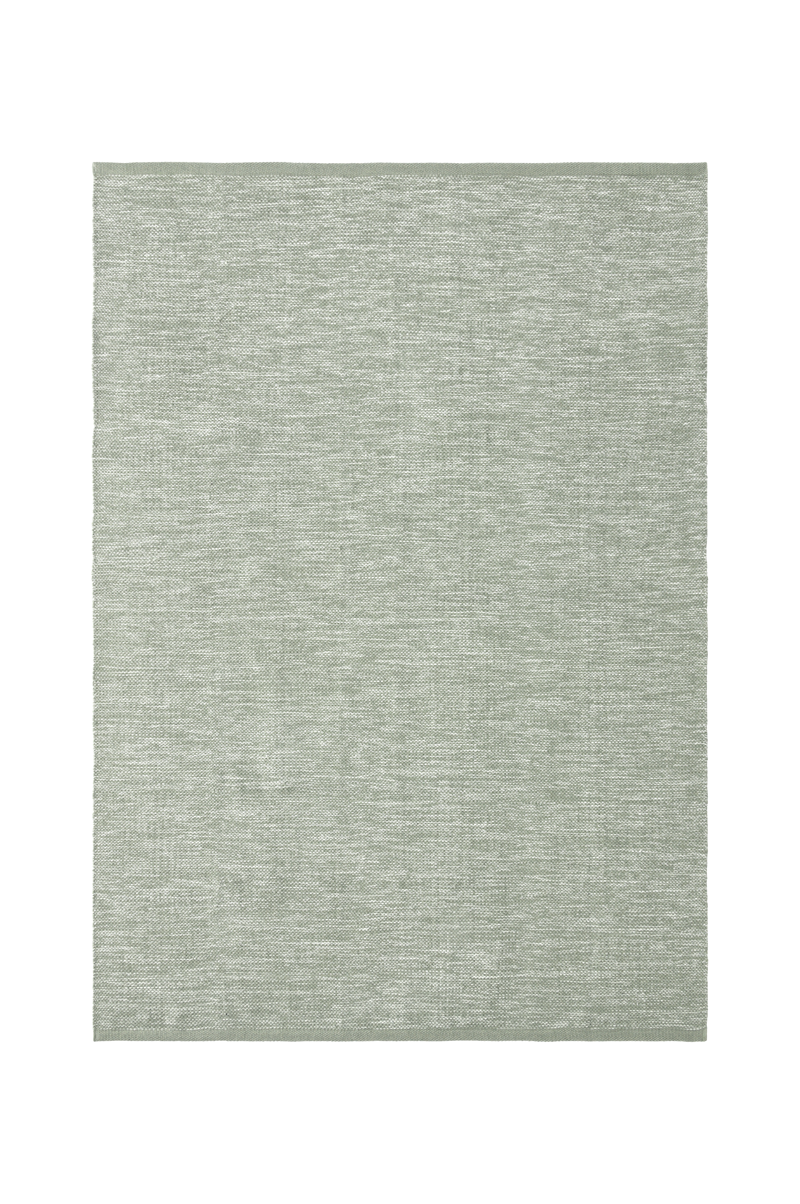 Sileä puuvillamatto meleerattua lankaa. Yksivärinen boordi lyhyillä sivuilla. Korkeus 0,5 cm.