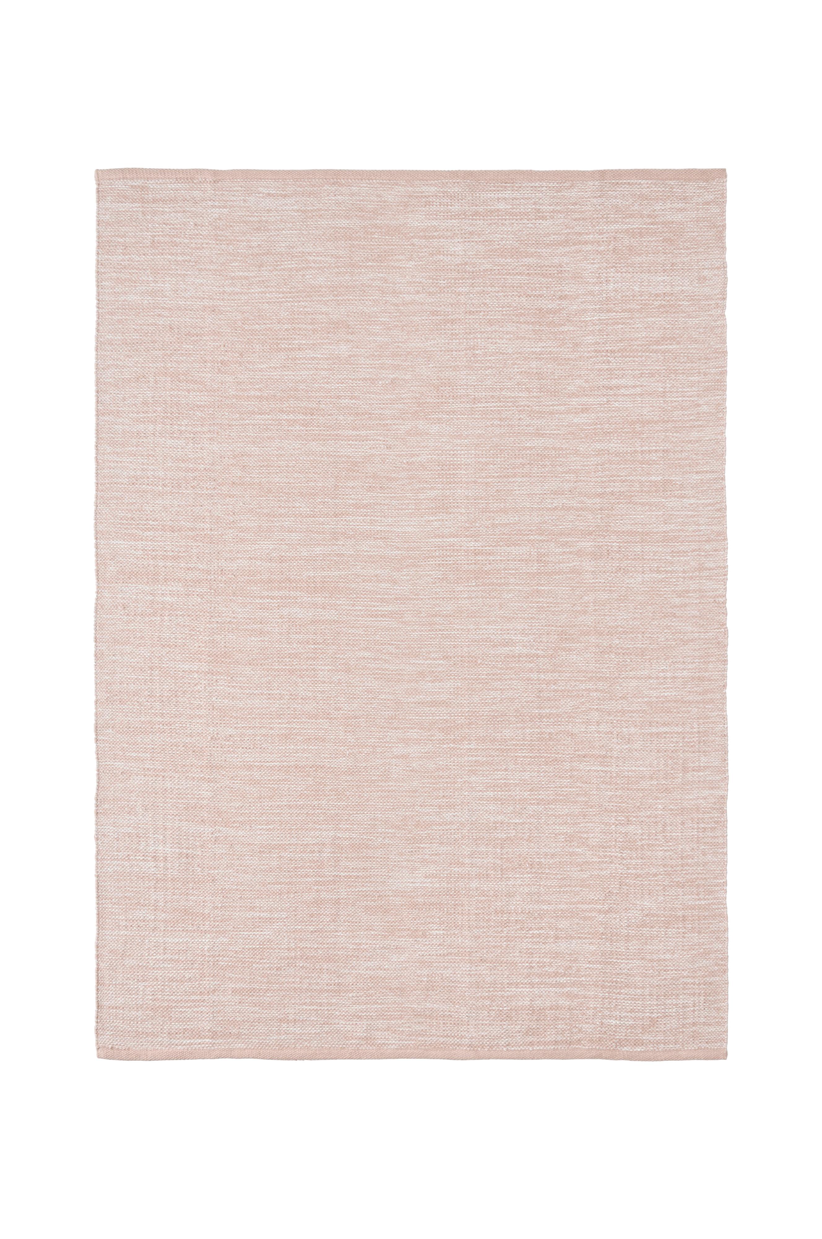 Sileä puuvillamatto meleerattua lankaa. Yksivärinen boordi lyhyillä sivuilla. Korkeus 0,5 cm.