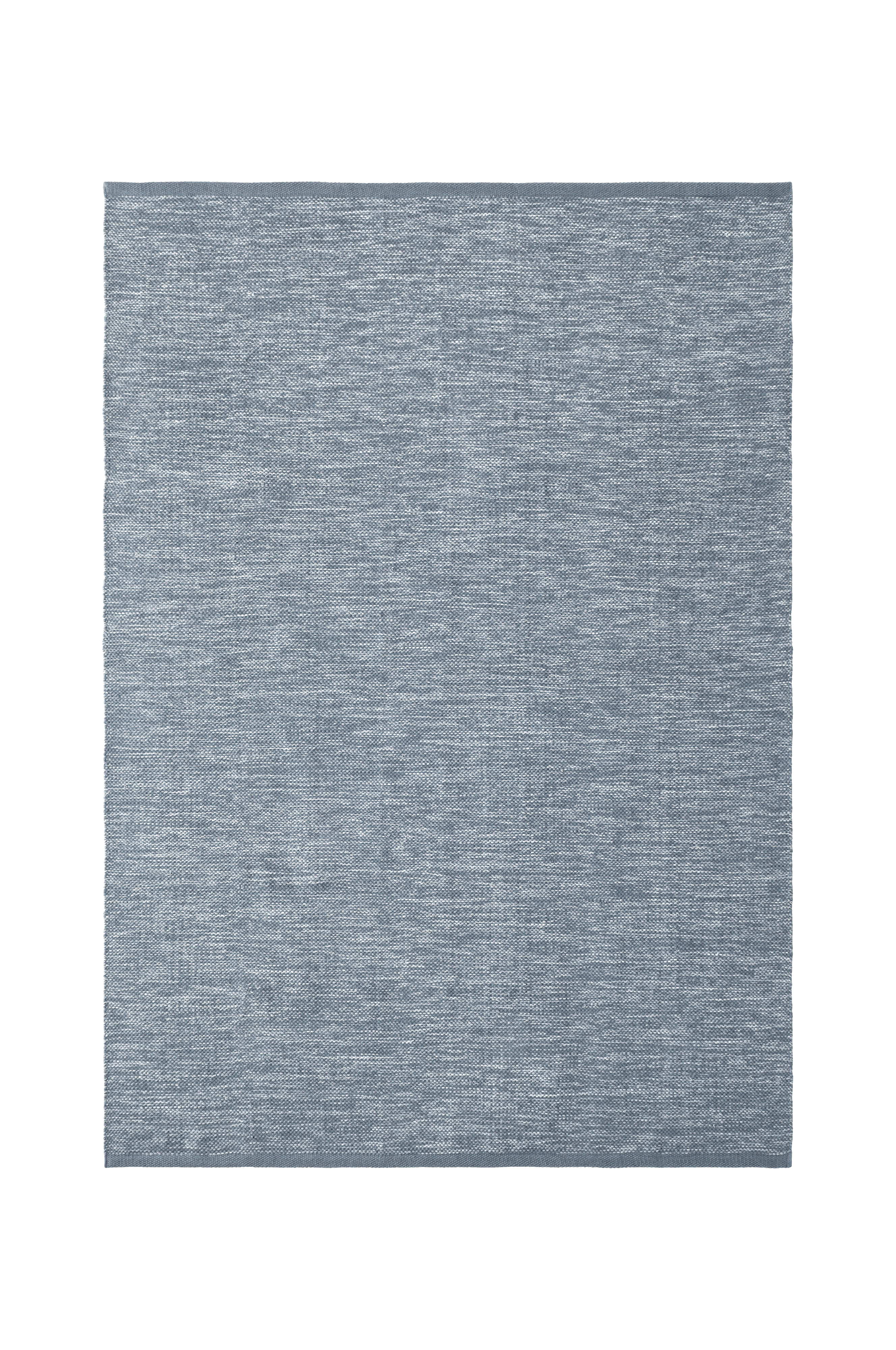 Sileä puuvillamatto meleerattua lankaa. Yksivärinen boordi lyhyillä sivuilla. Korkeus 0,5 cm.