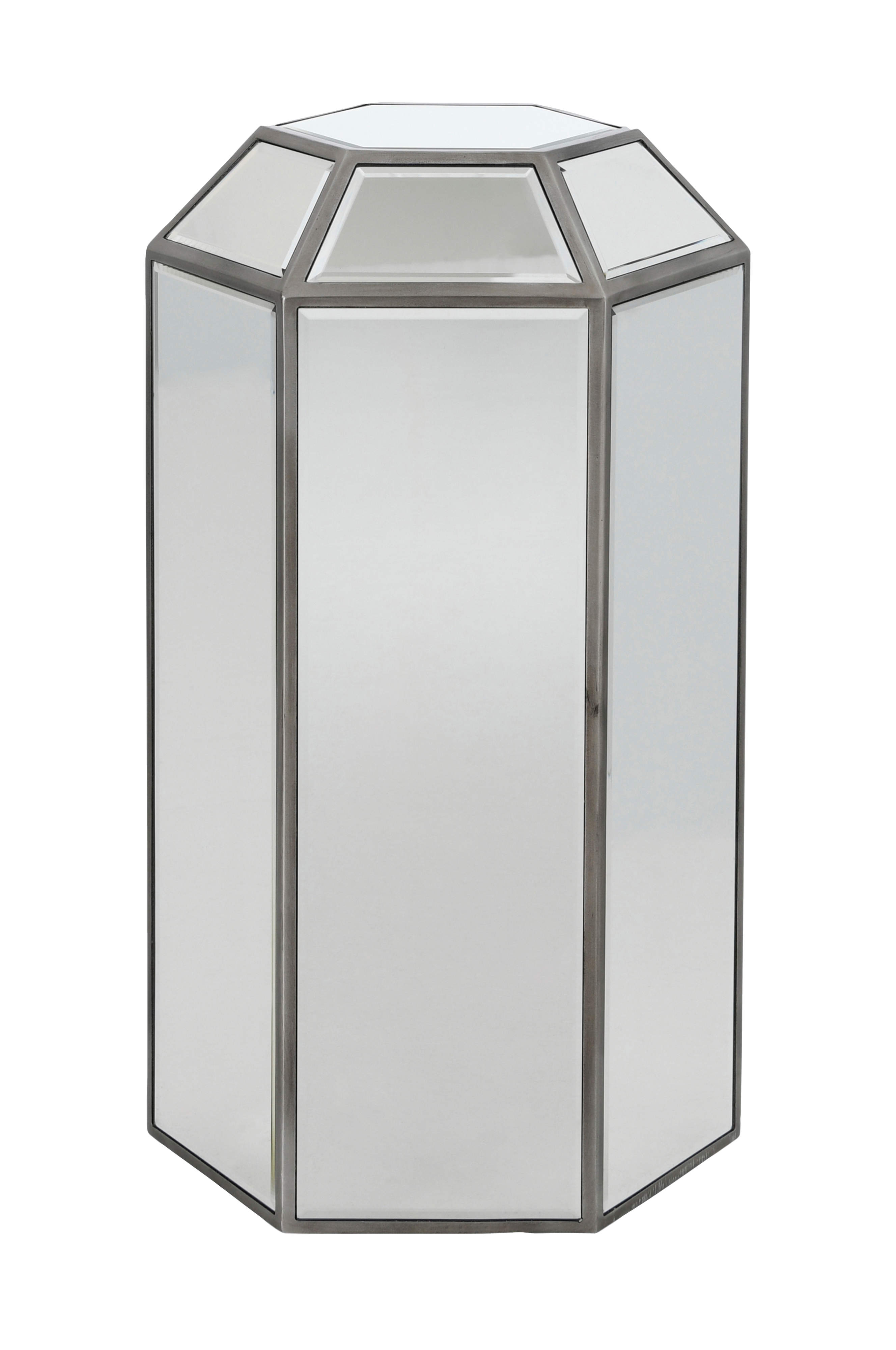 Pylväs, jossa metalliin upotetut peililasipaneelit. Lasipaneeleissa on viistot reunat. Runko MDF-levyä. Enimmäiskuormitus 100 kg.