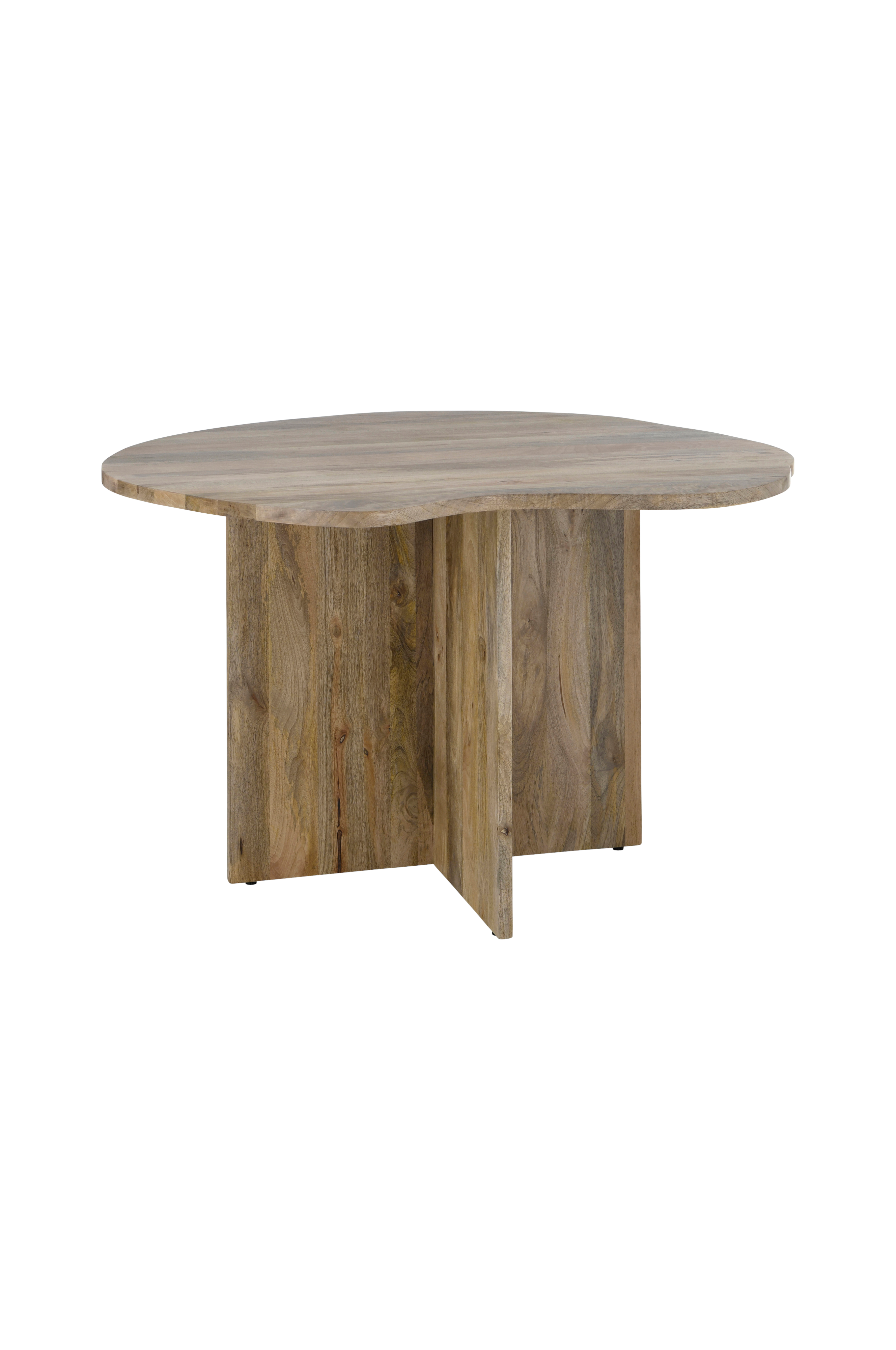 Ruokapöytä vahapintaista mangopuuta. Pöytälevy, jossa epäsäännöllinen, orgaaninen muoto.