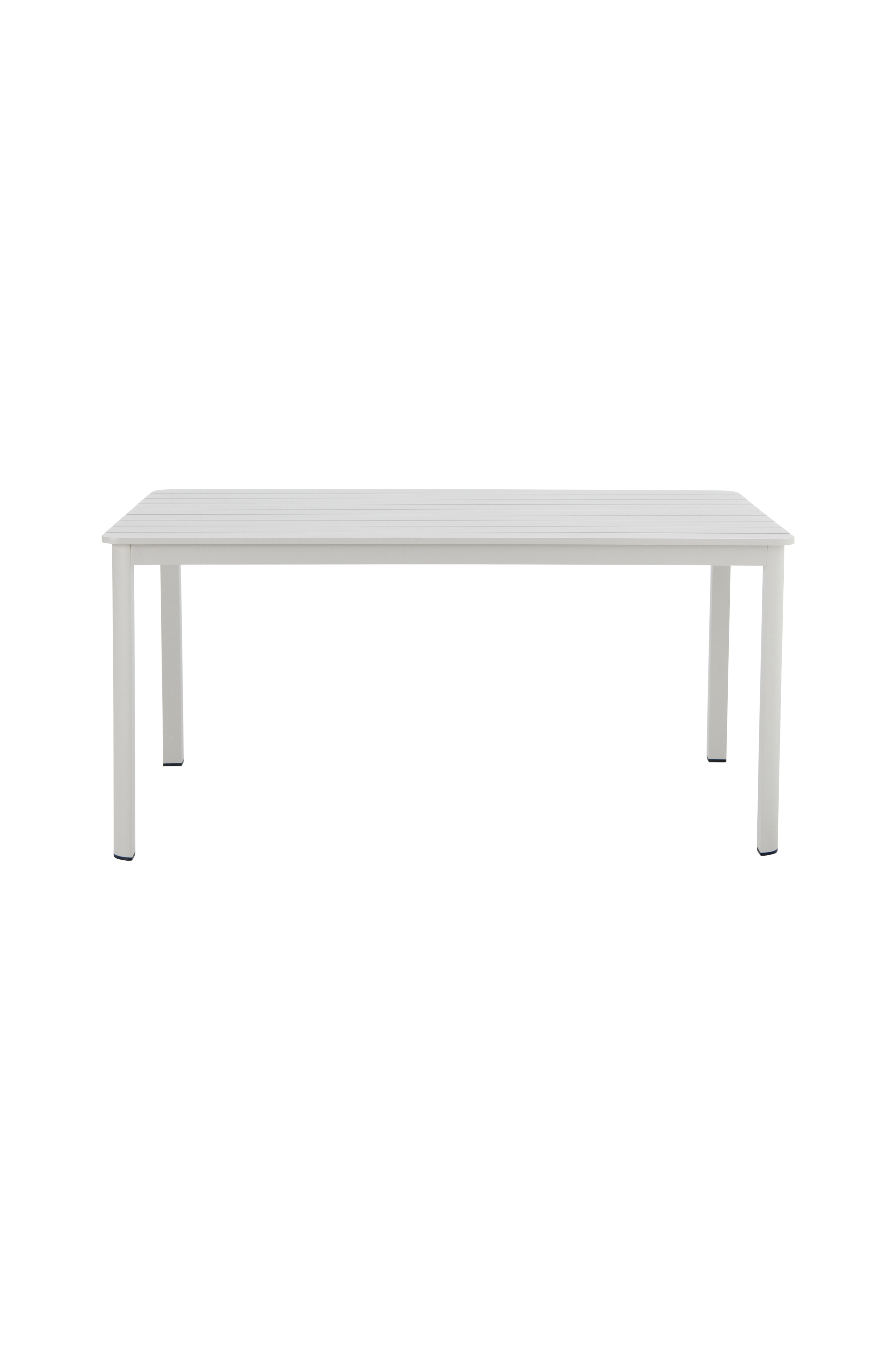 Alumiininen ruokapöytä, jossa rimalevy. Sopii ulkokäyttöön.