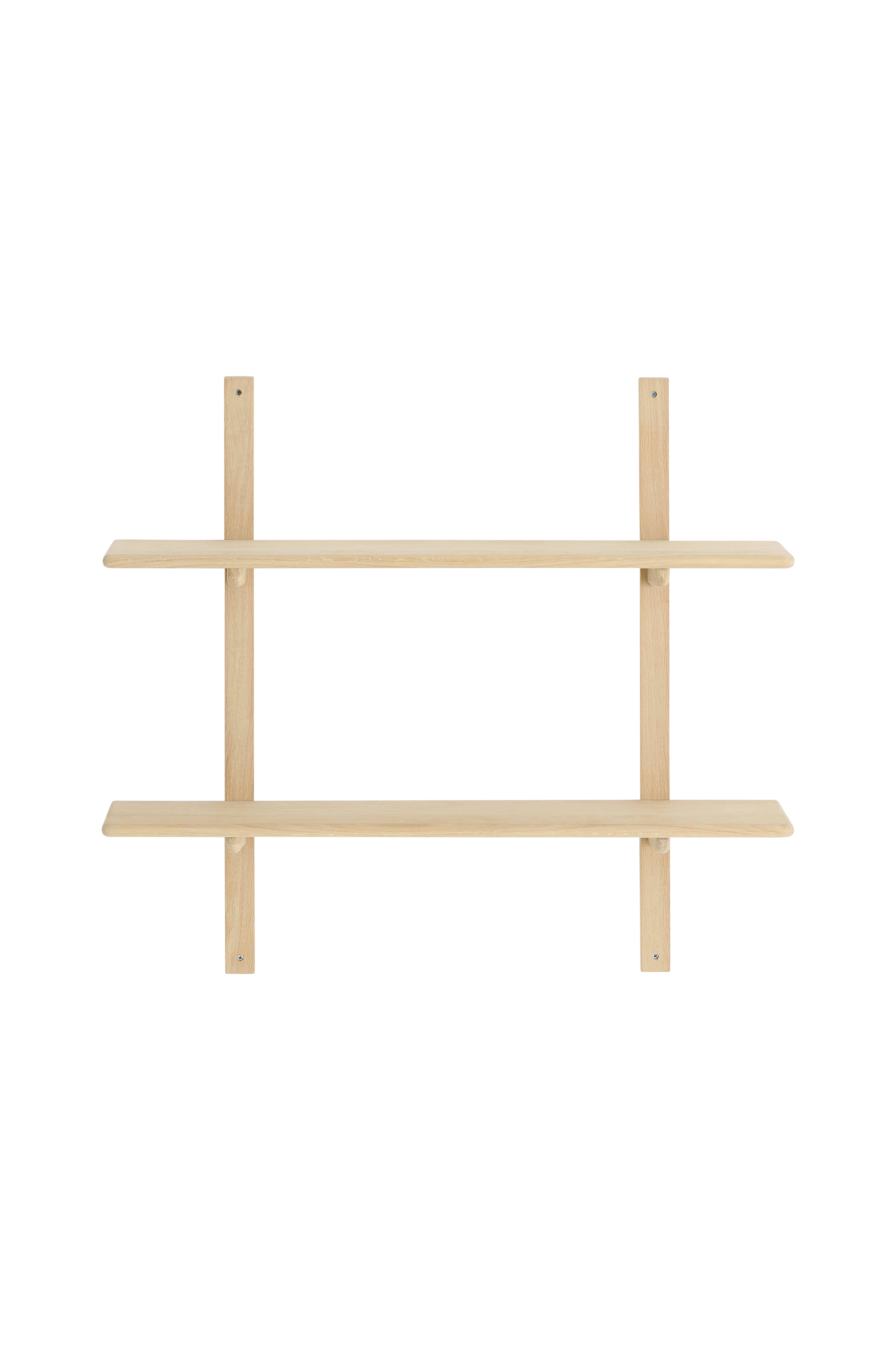 Niin tyytyväinen! Siro hylly, joka kaunistaa paikkaansa. Vaalea puu ilman keltaisia sävyjä.