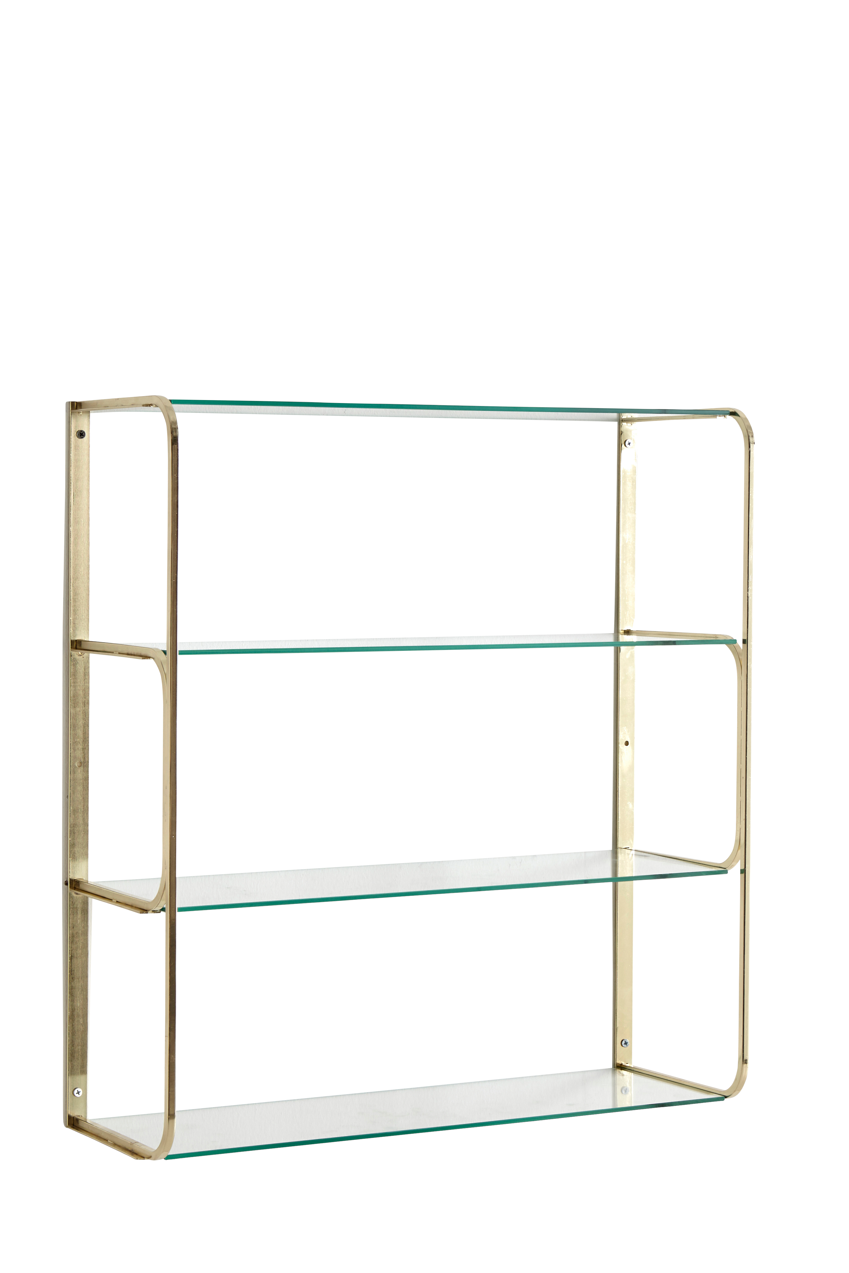 Seinähylly, jossa metallirunko ja 4 hyllytasoa lasia. Metallirungot ovat yhteensopivia, joten voit ostaa useita hyllyköitä ja kiinnittää ne vierekkäin.