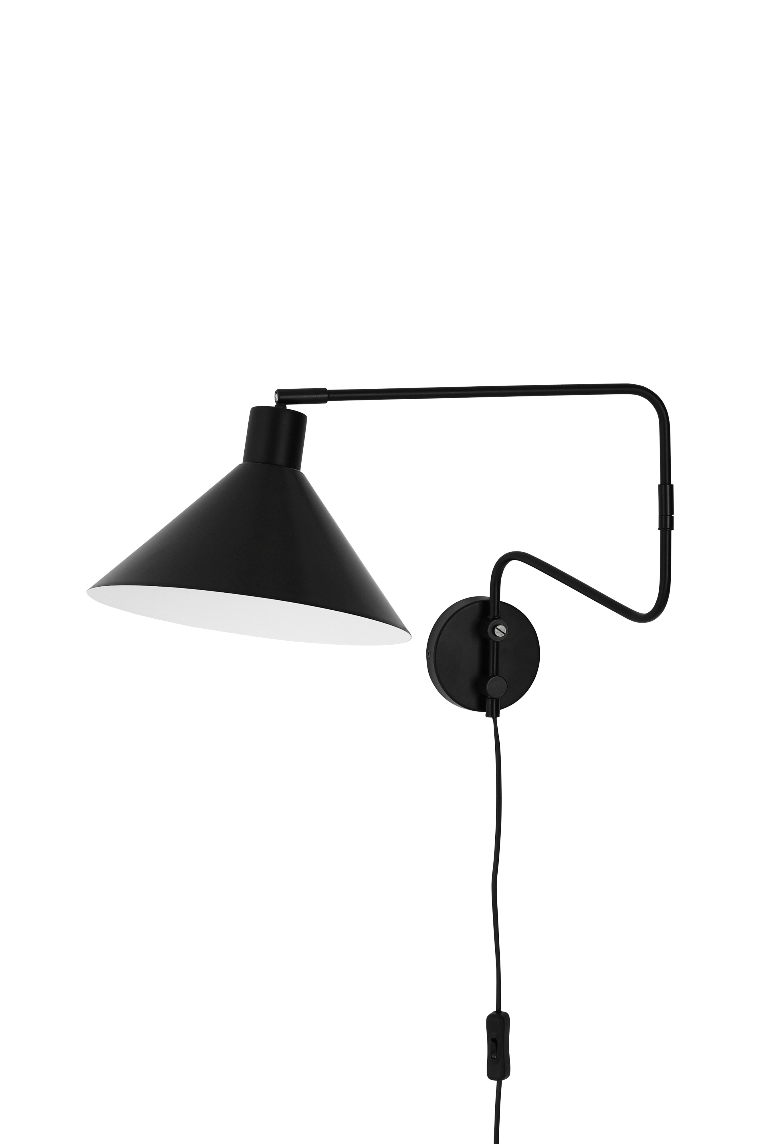Metallinen seinävalaisin, jonka käännettävä varsi erkaantuu seinästä. Varjostinta voidaan säätää korkeus- ja sivusuunnassa.