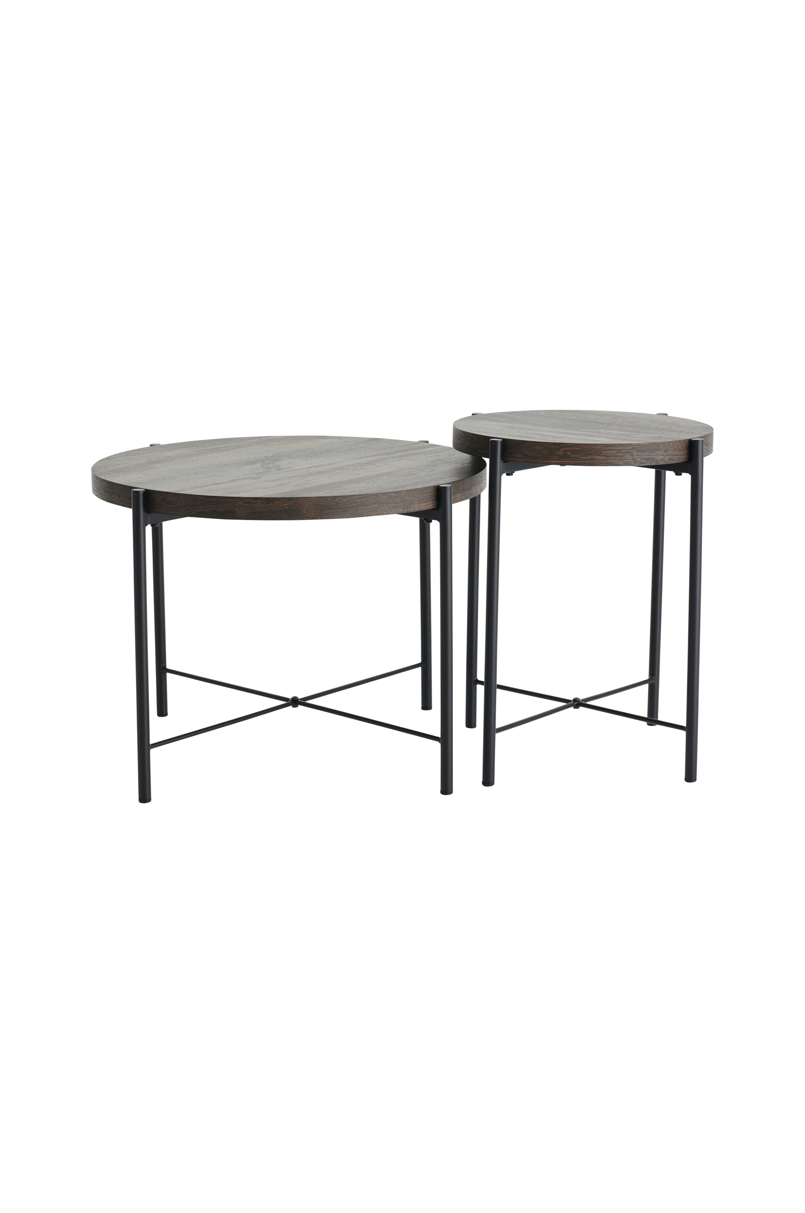 2 sivupöytää, joiden jalat ja runko jauhemaalattua metallia. Pöytälevy pinnoitettua MDF-levyä.