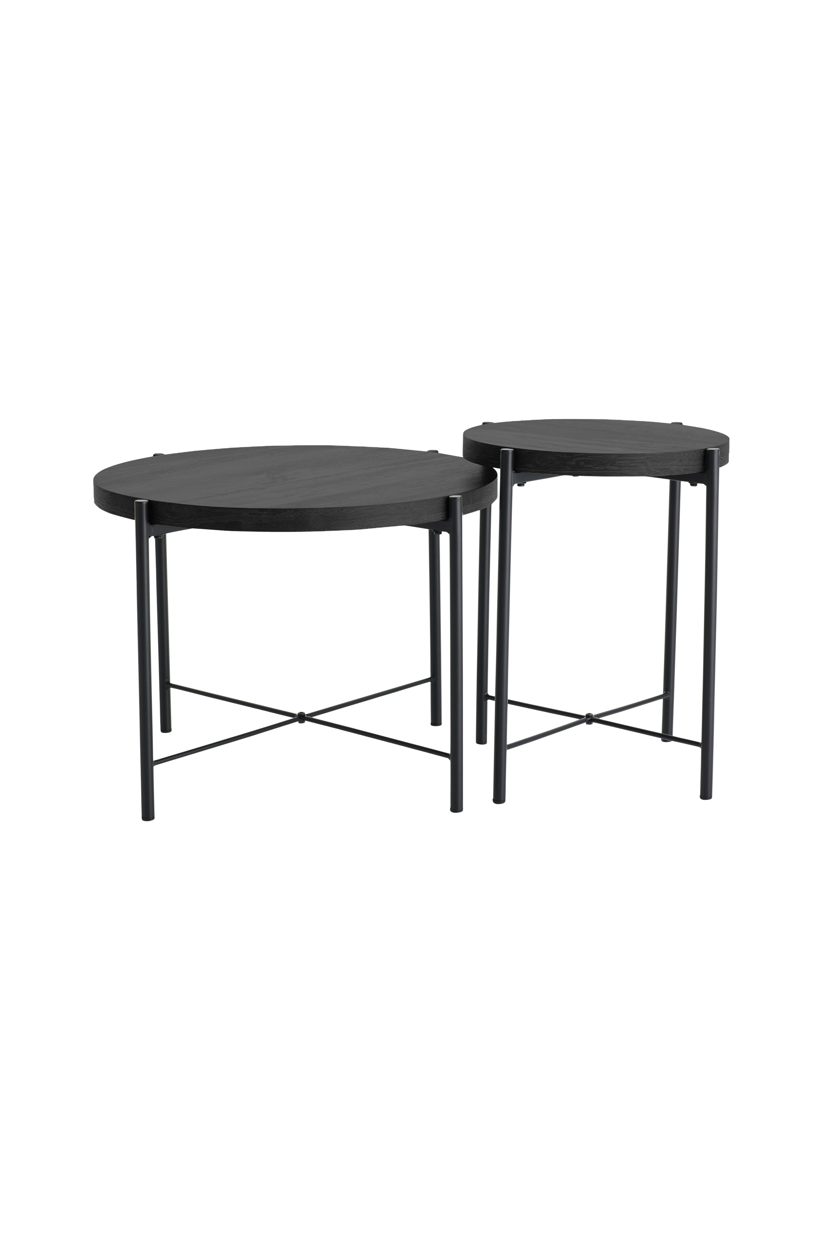 2 sivupöytää, joiden jalat ja runko jauhemaalattua metallia. Pöytälevy pinnoitettua MDF-levyä.