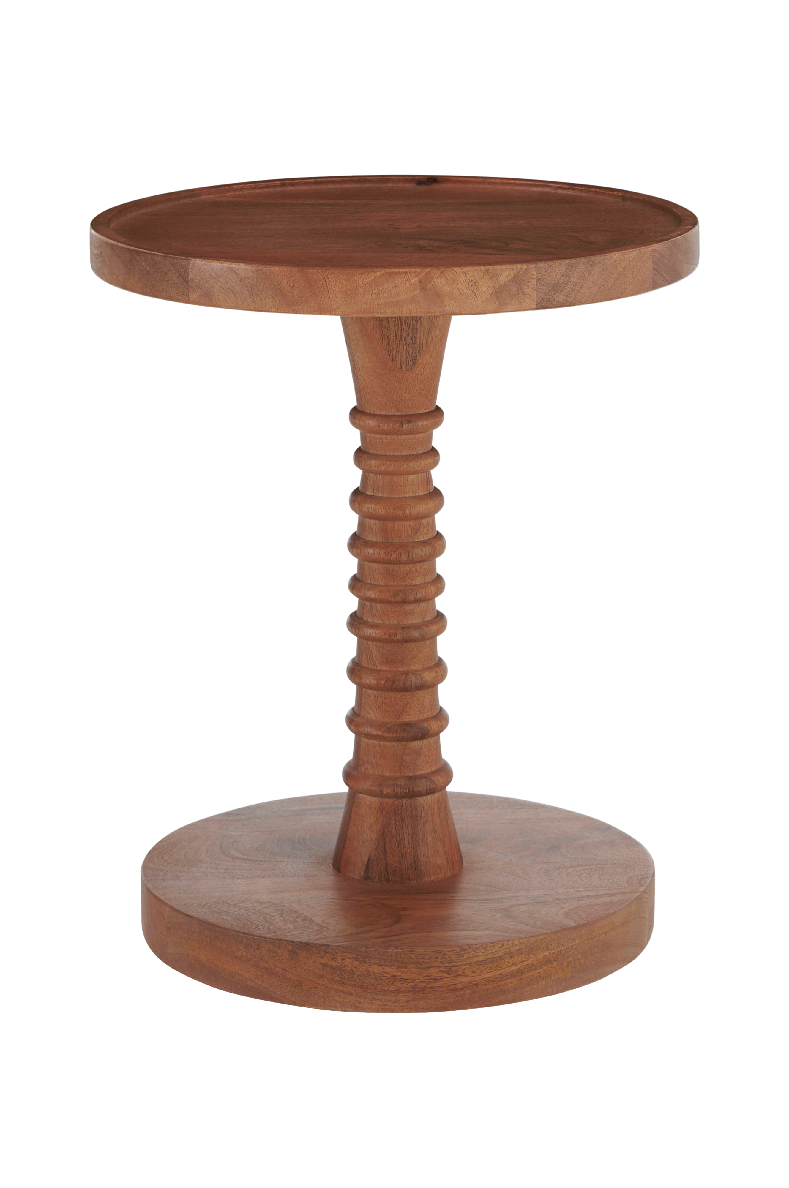 Sivupöytä petsattua mangopuuta. Sorvattu jalka.