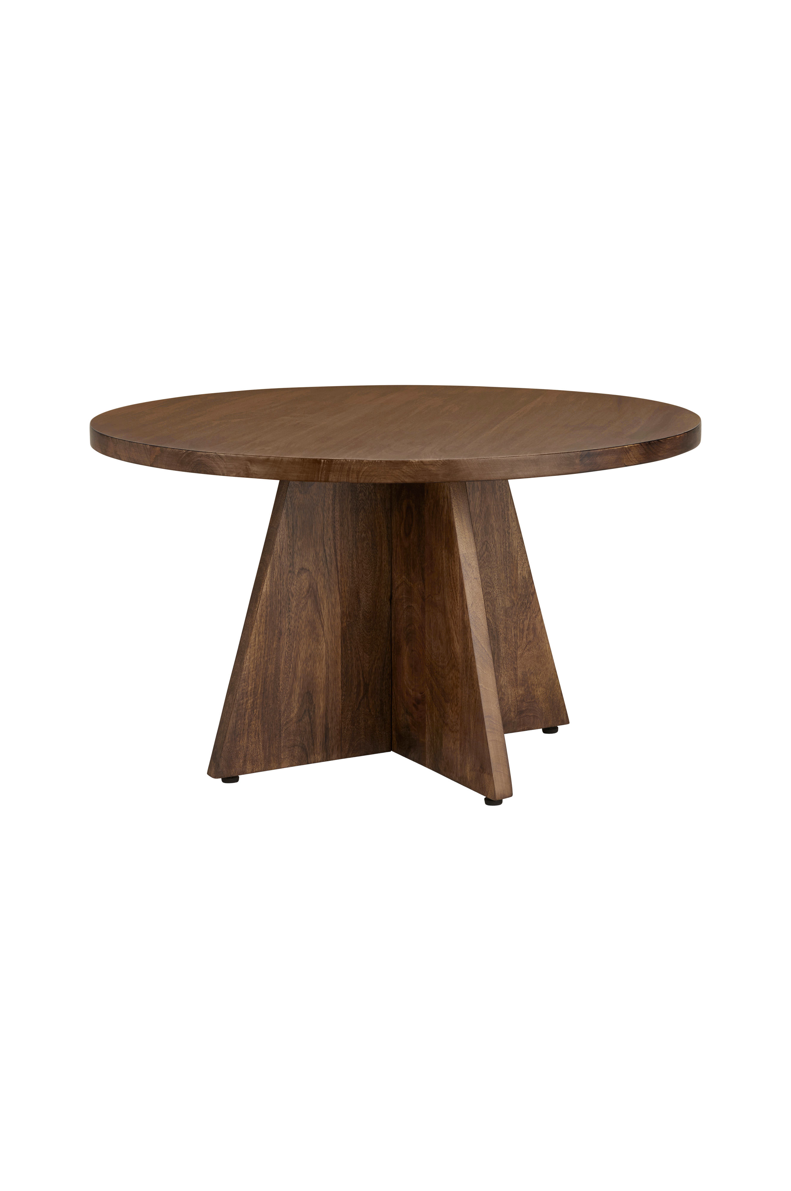 Pyöreä sohvapöytä massiivista mangopuuta, jossa lakattu pinta. Mitat: Korkeus 47 cm, halkaisija 80 cm. Toimitetaan osina.
