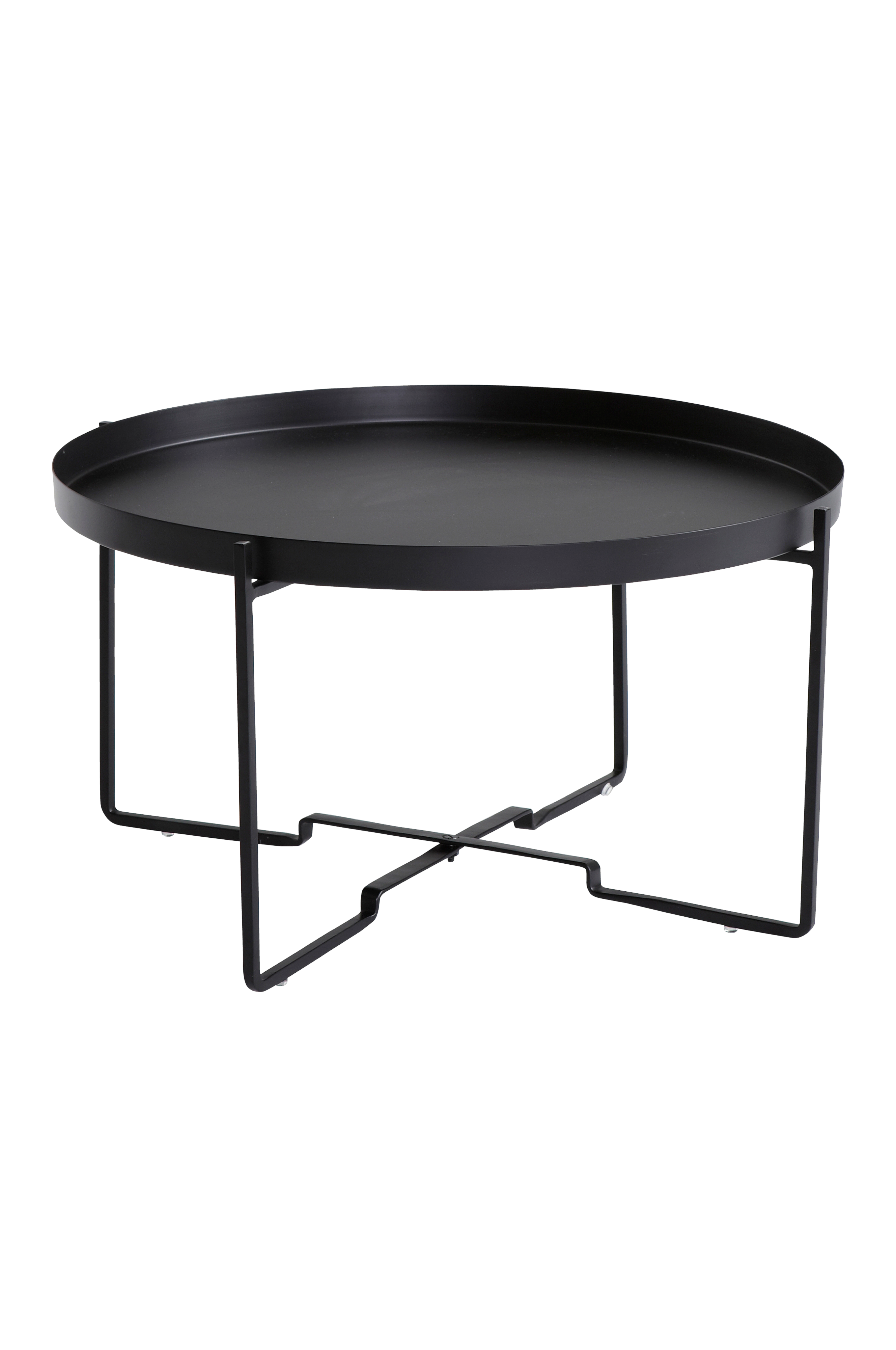 Sohvapöytä, jossa irrotettava tarjotin. Kokoontaitettava jalusta. Metallia. Ø 57 cm. Korkeus 31 cm.