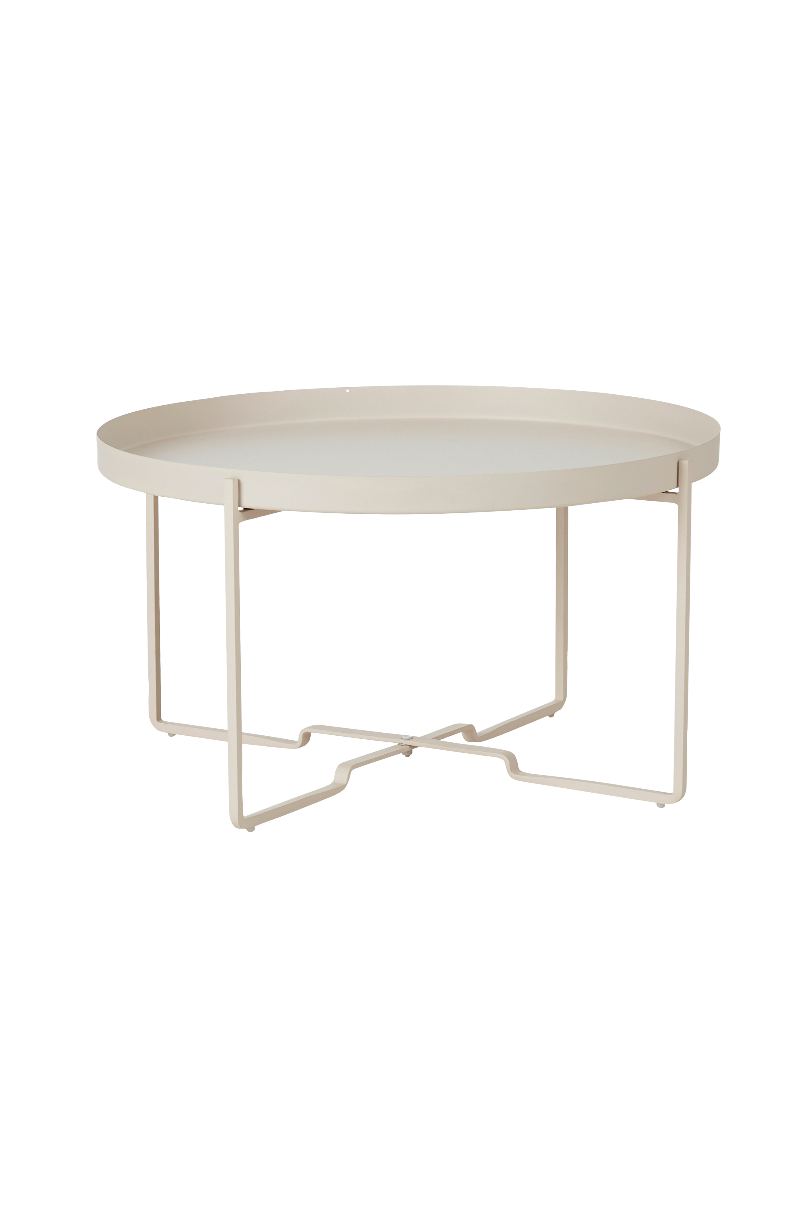 Sohvapöytä, jossa irrotettava tarjotin. Kokoontaitettava jalusta. Metallia. Ø 57 cm. Korkeus 31 cm.