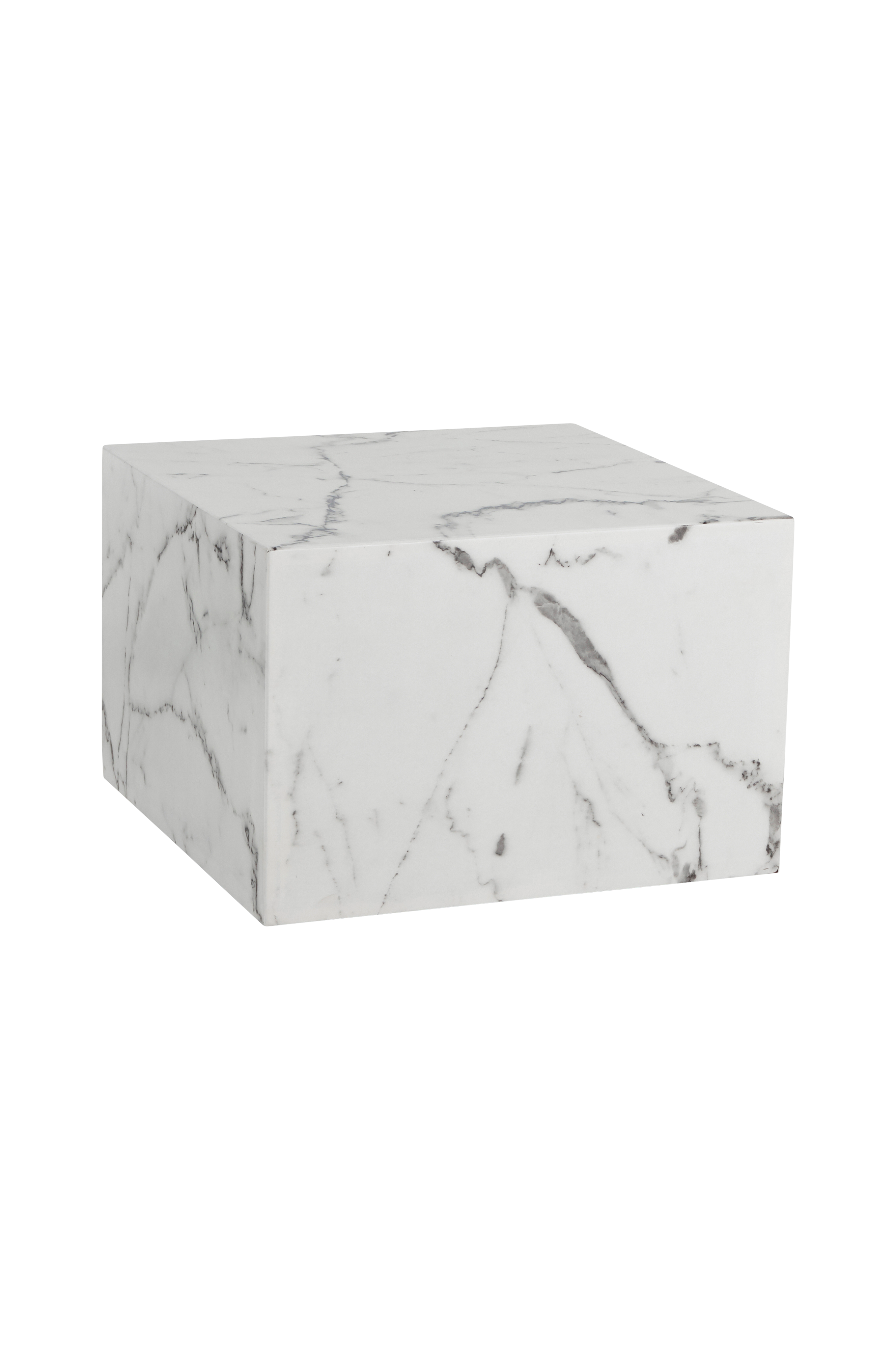 Sohvapöytä/sivupöytä pinnoitettua MDF-levyä, jossa on aidonnäköinen marmorikuviointi ja kestävä vettähylkivä pinta. Jalat muovia, jalkojen korkeus n. 3 cm. Koko 60x60 cm. Korkeus 43 cm.