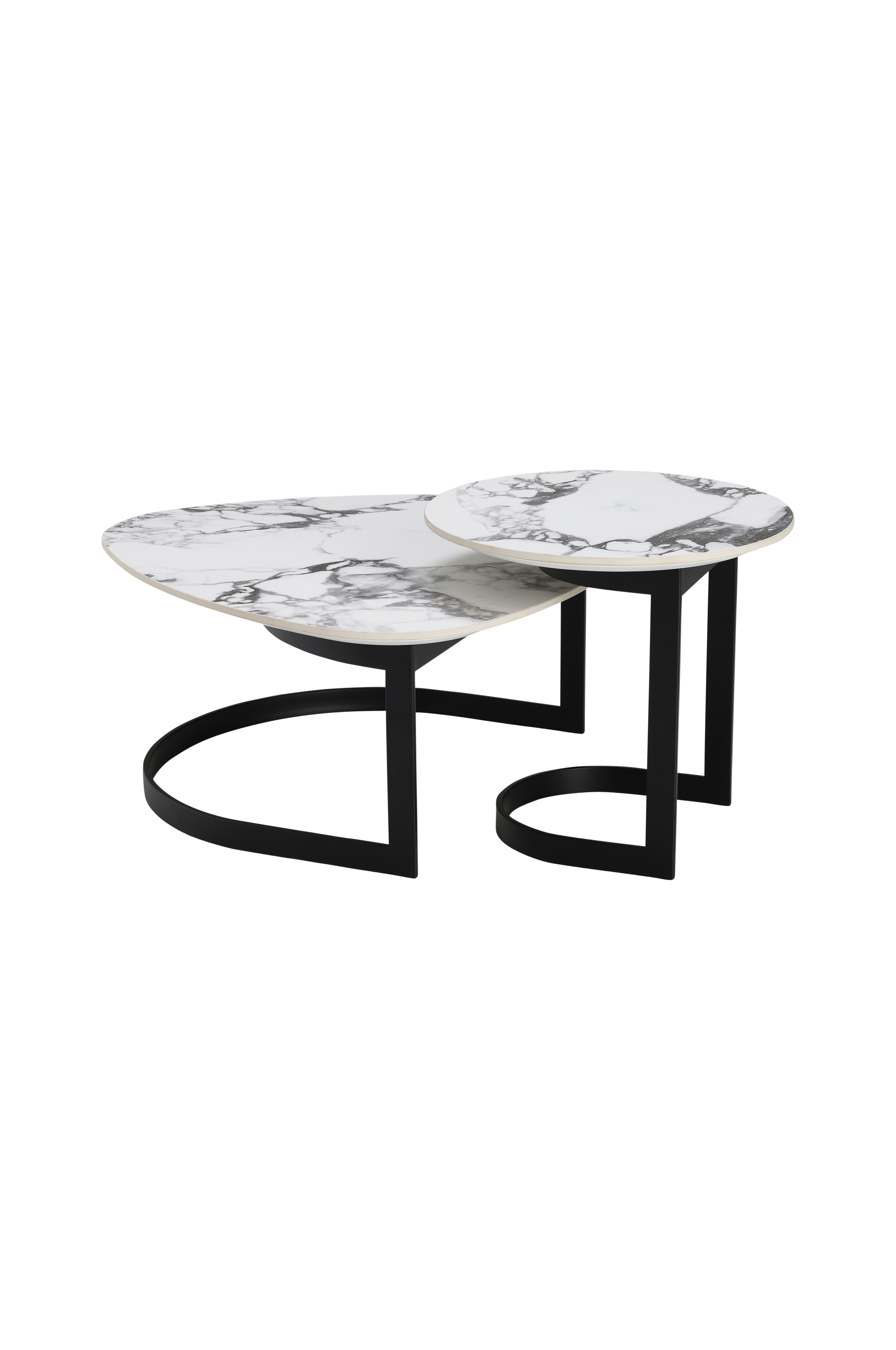 Pöytä 2: Epäsymmetrinen muoto. 78x78 cm. Korkeus 36 cm.