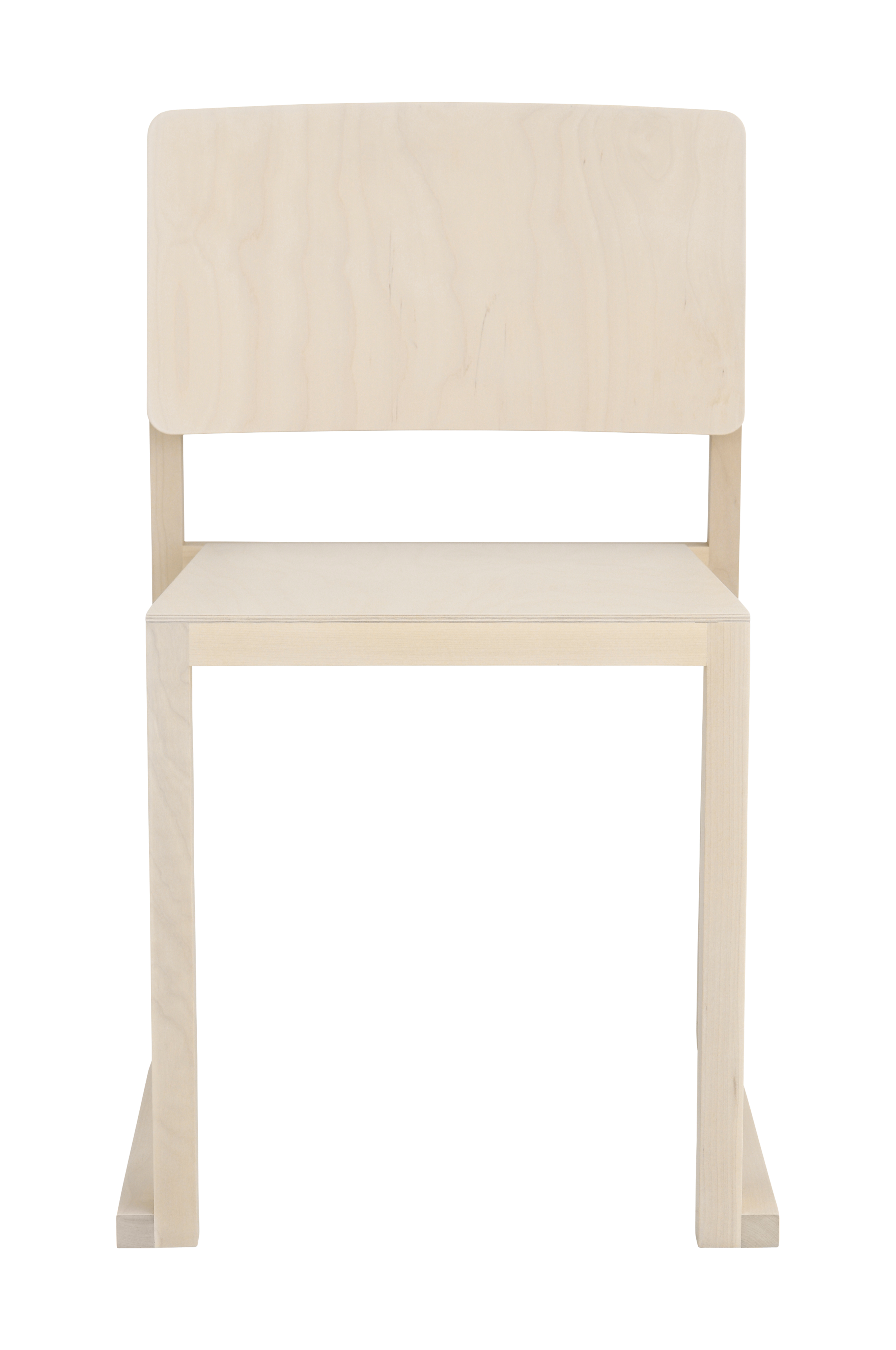 Ruotsalaisvalmisteinen tuoli, jossa mukavasti kallistettu selkänoja. Runko massiivikoivua. Istuin ja selkänoja koivuviilutettua vaneria. Tuoli on pinottava.