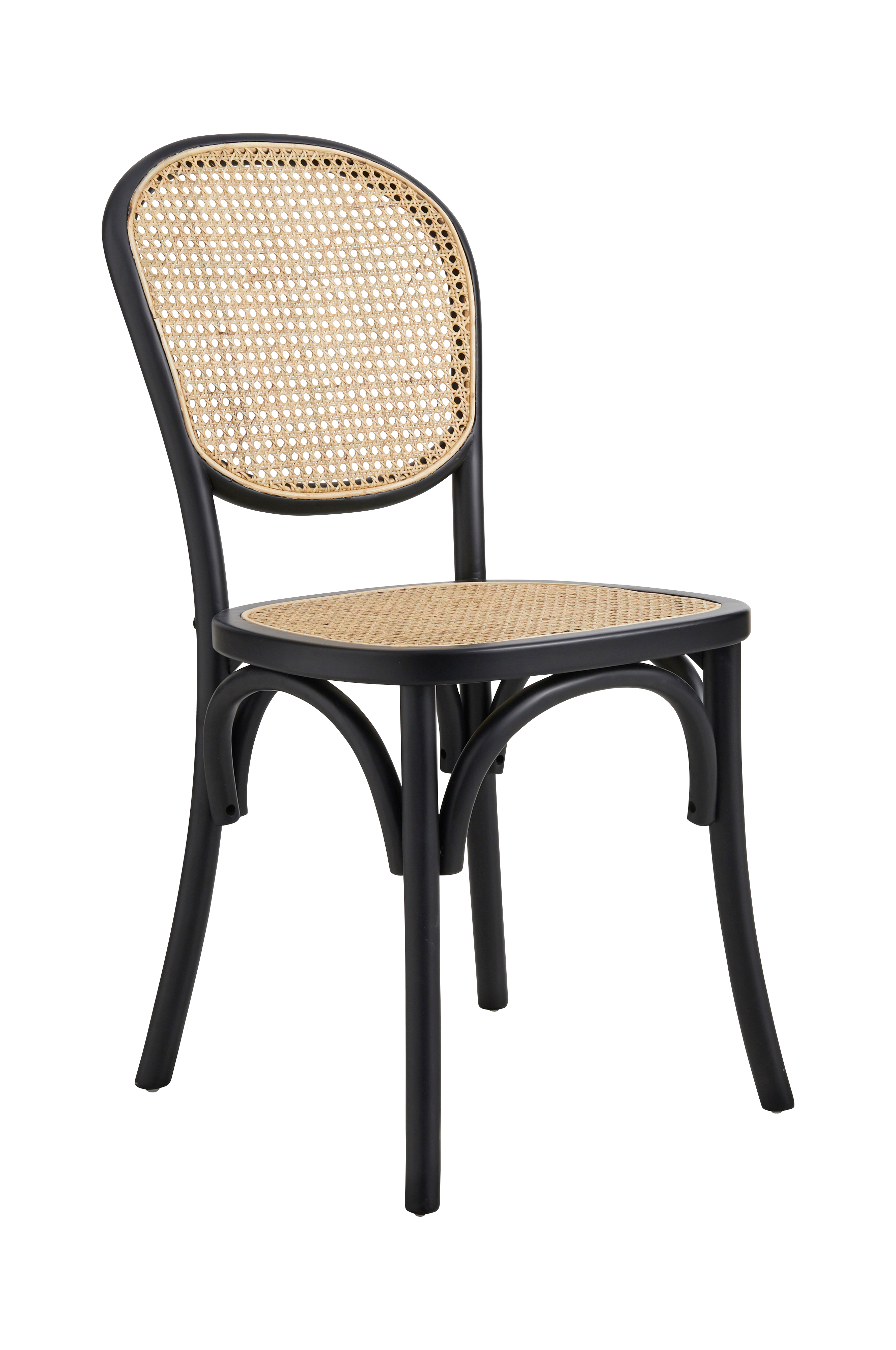 Runko koivua, selkänoja ja vahvistettu istuin rottinkia. Pakkauksessa kaksi tuolia. Korkeus 89 cm, leveys 44,5 cm, syvyys 56 cm. Istuinsyvyys 42 cm, istuinkorkeus 46,5 cm. Toimitetaan koottuna. Paino 10 kg.