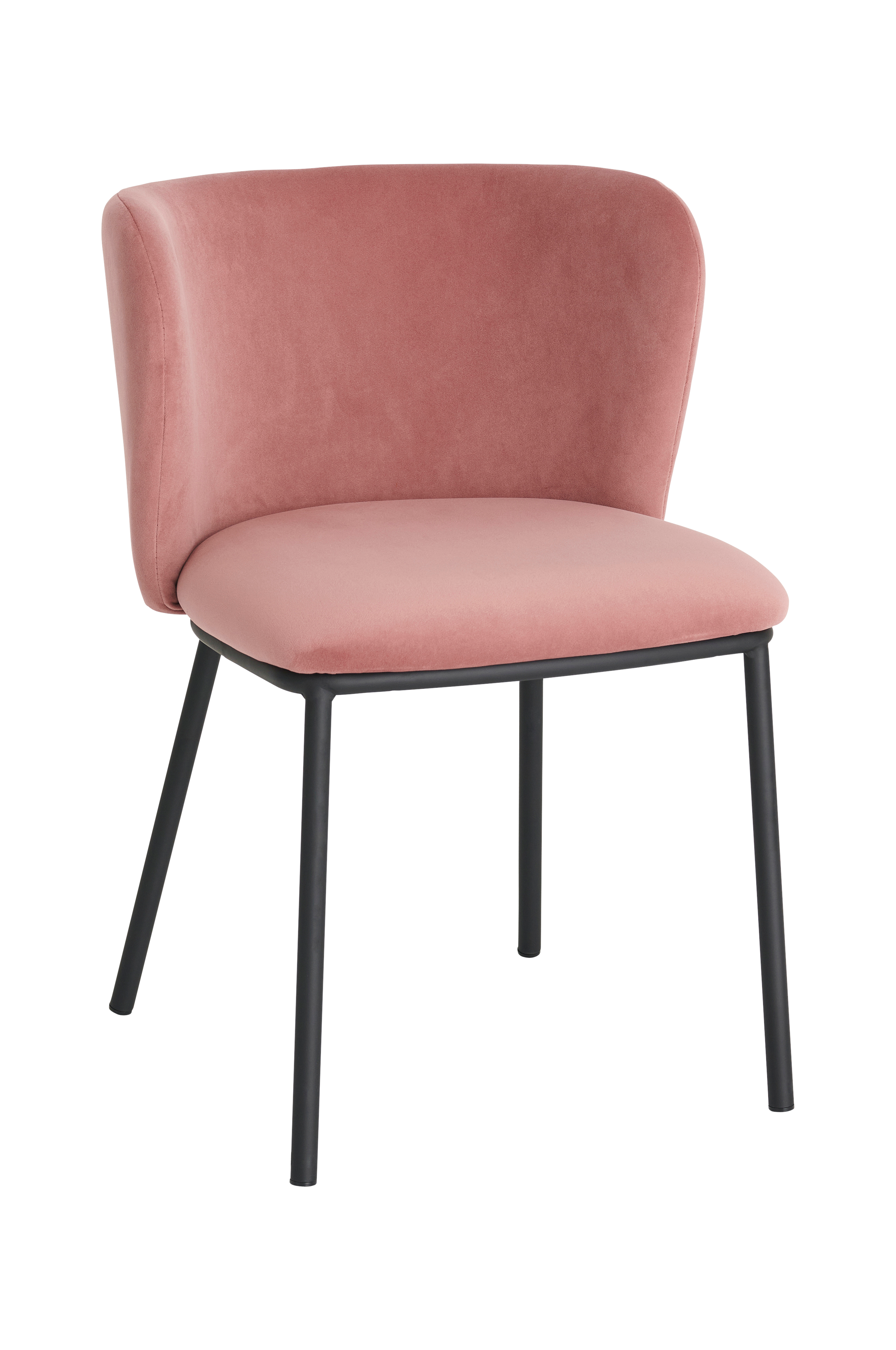 2 tuolia, joissa skandinaavinen, pelkistetty muotoilu ja kuppimainen selkänoja. Päällinen ja vaahtotäyte. Metallijalat. Enimmäiskuormitus 150 kg. Helppo koota.