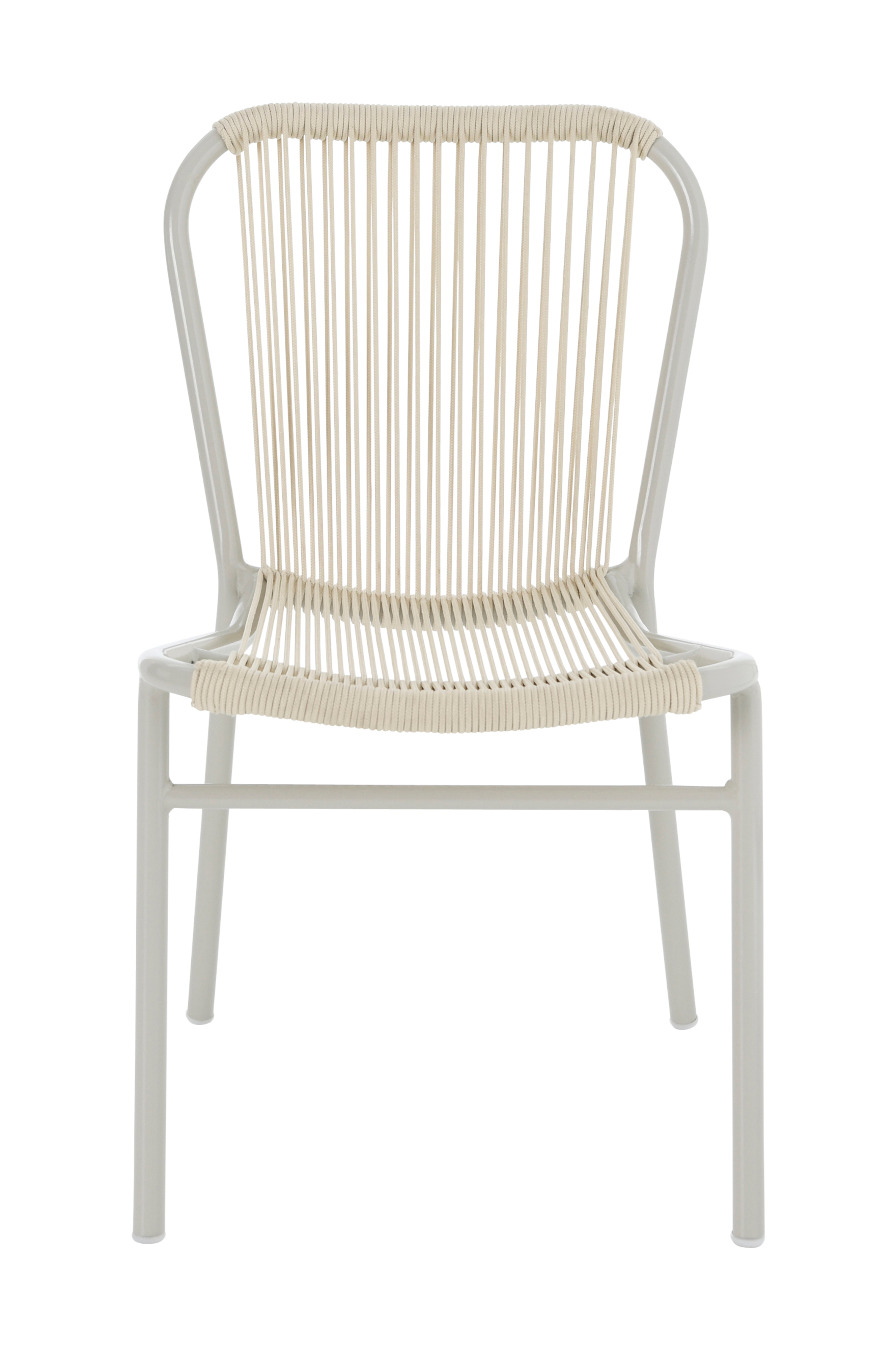 2 pinottavaa, kevyttä alumiinituolia ulkokäyttöön. Istuinosa ja selkänoja nailonnarua. Punotut yksityiskohdat.