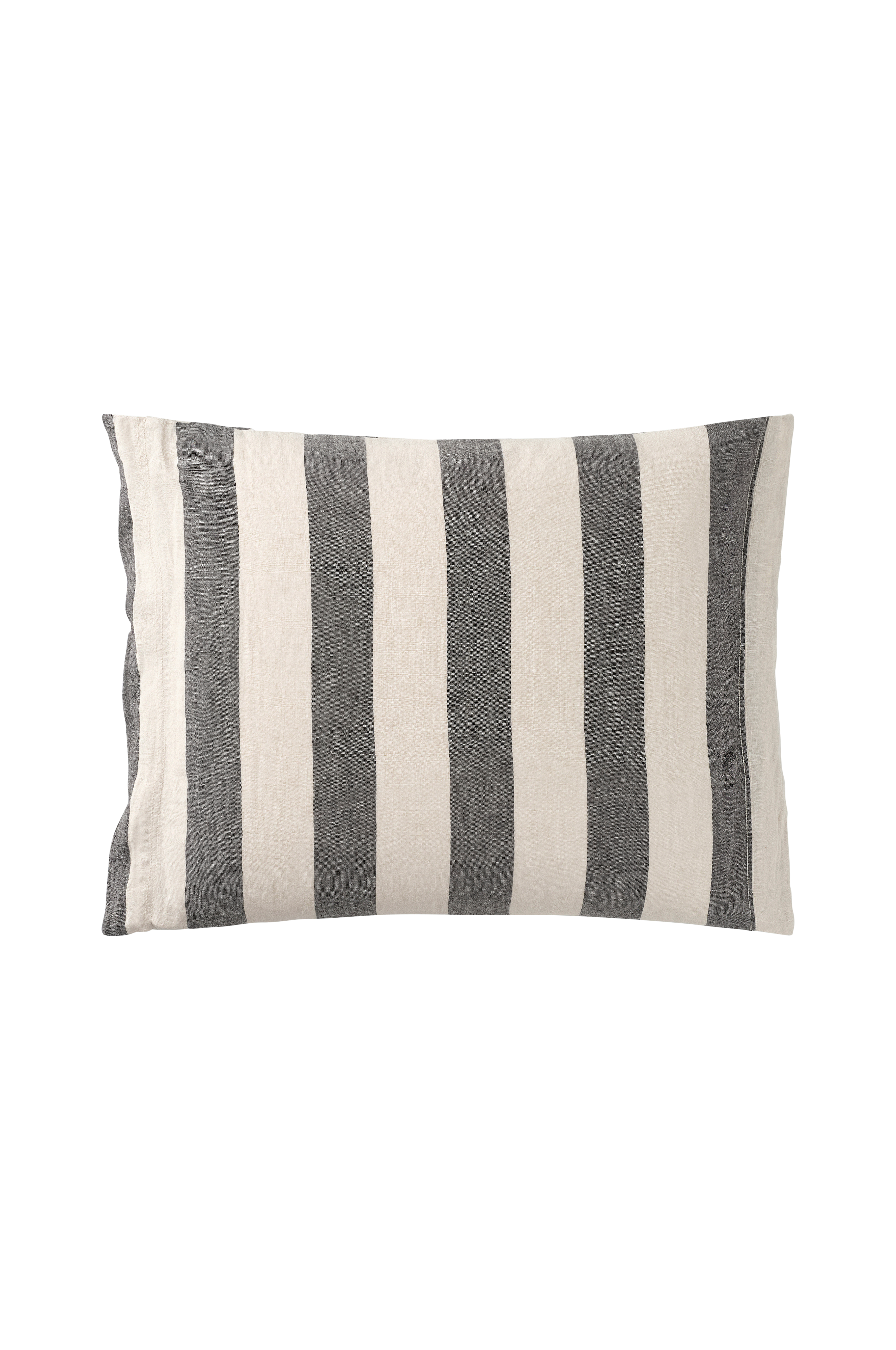 Tyynyliina pestyä ranskalaista pellavaa. Lankavärjätyt raidat. Koko 50x60 cm + 5 cm:n reunus lyhyillä sivuilla.