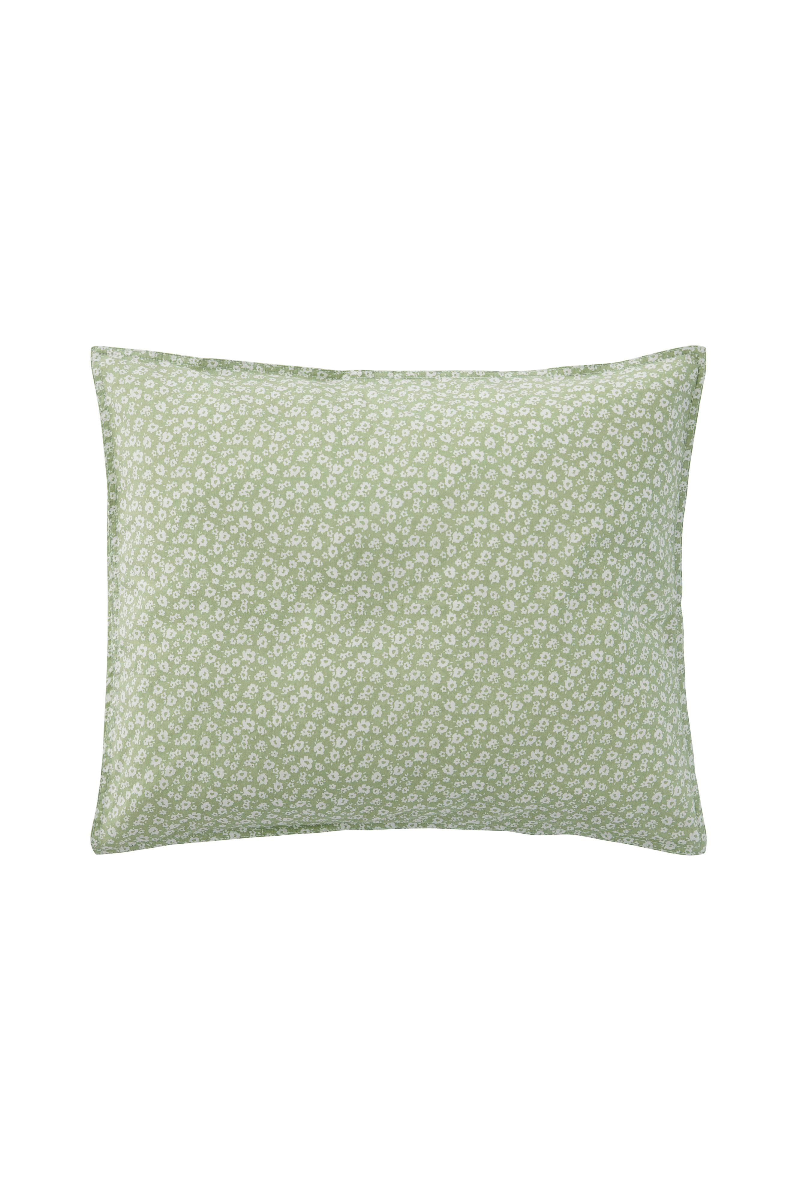Pehmeä vihreä sävy valkoisilla kukilla. Laatu tuntuu hyvältä ja kangas on pehmeää ja mukavaa. Todellinen suosikki kotona!