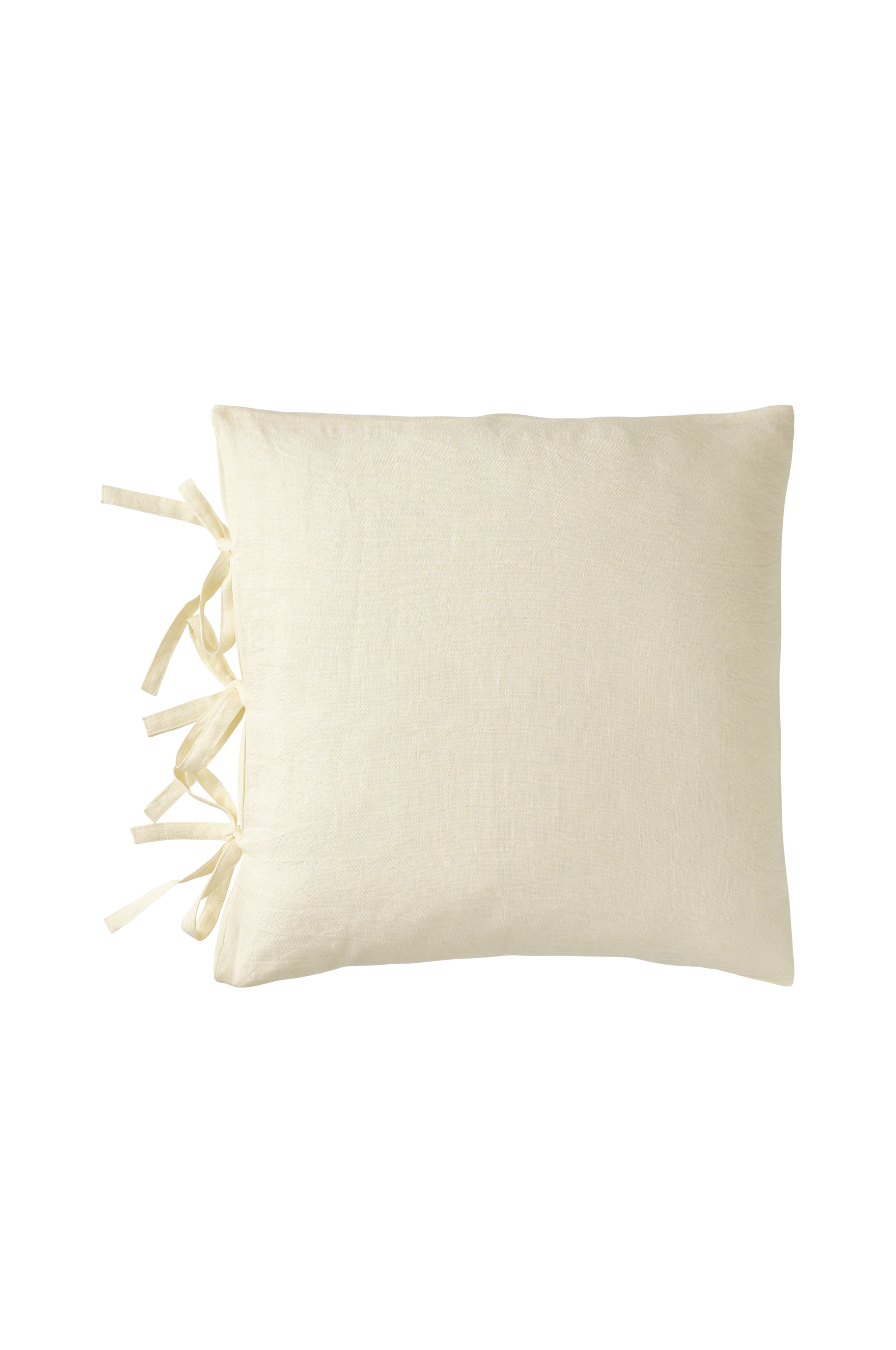 Pehmeää, pestyä pellavaa, jossa vintagelook. Ranskalaista pellavaa. Kolme paria solmimisnauhoja toisessa reunassa. Koko 50x50 cm.