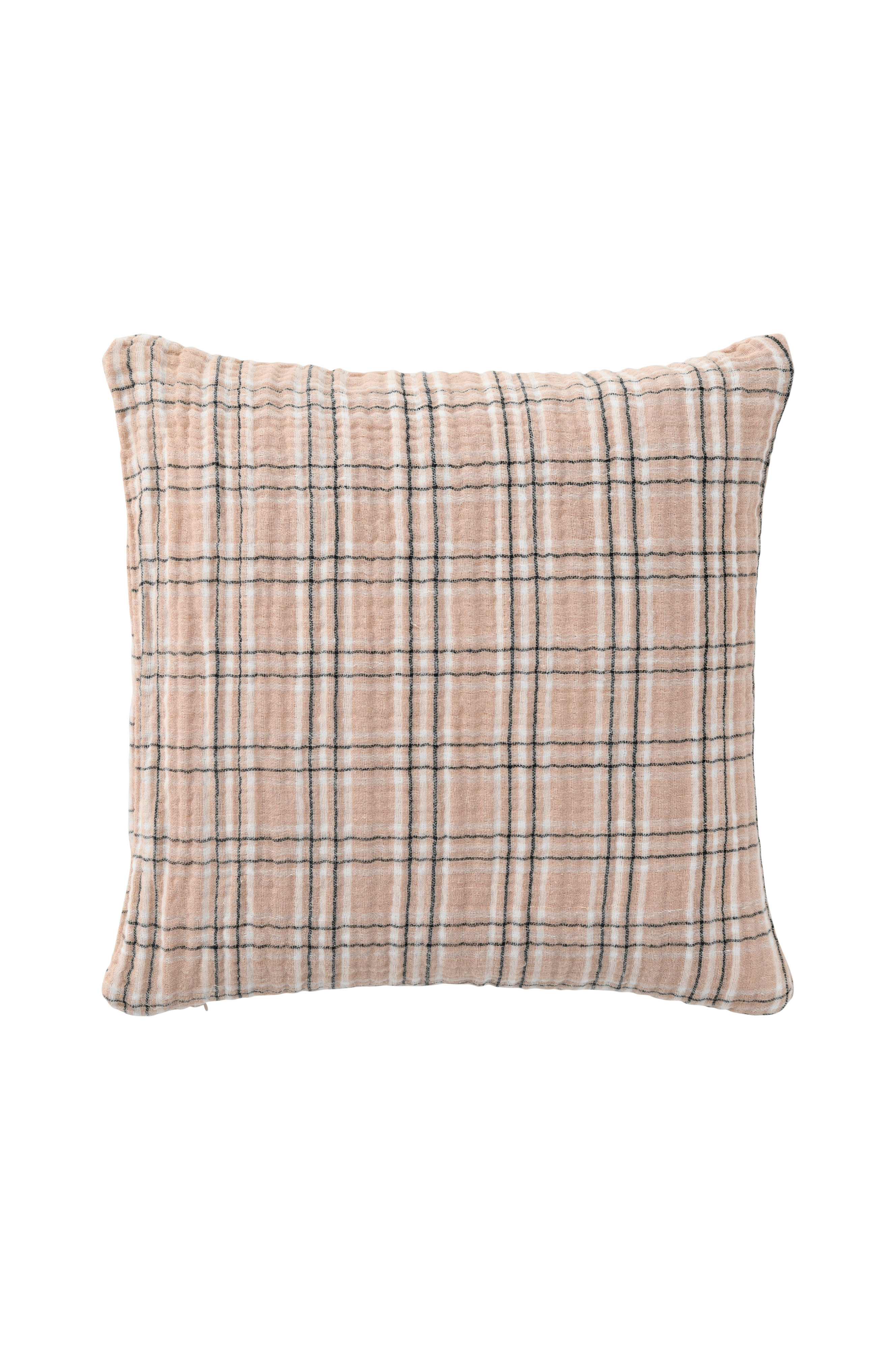 Tyynynpäällinen lankavärjättyä ja pestyä nelinkertaista musliinia. Musliini on erittäin pehmeää, ilmavaa ja aavistuksen struktuuripintaista ryppypintaista kangasta. Vetoketju. Koko 50x50 cm.
