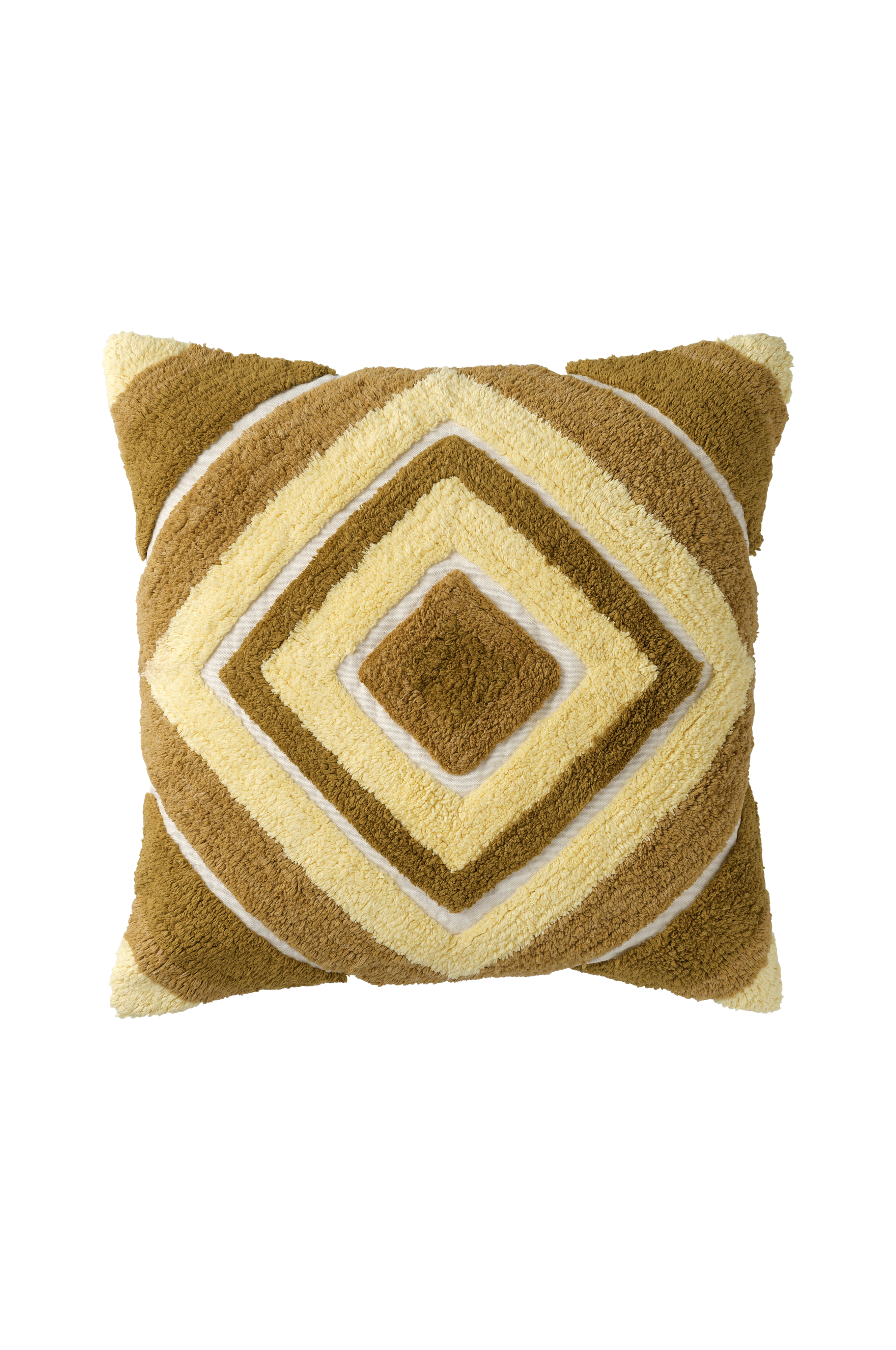 • Tyynynpäällinen tupsukoristeisella kuvioinnilla edessä