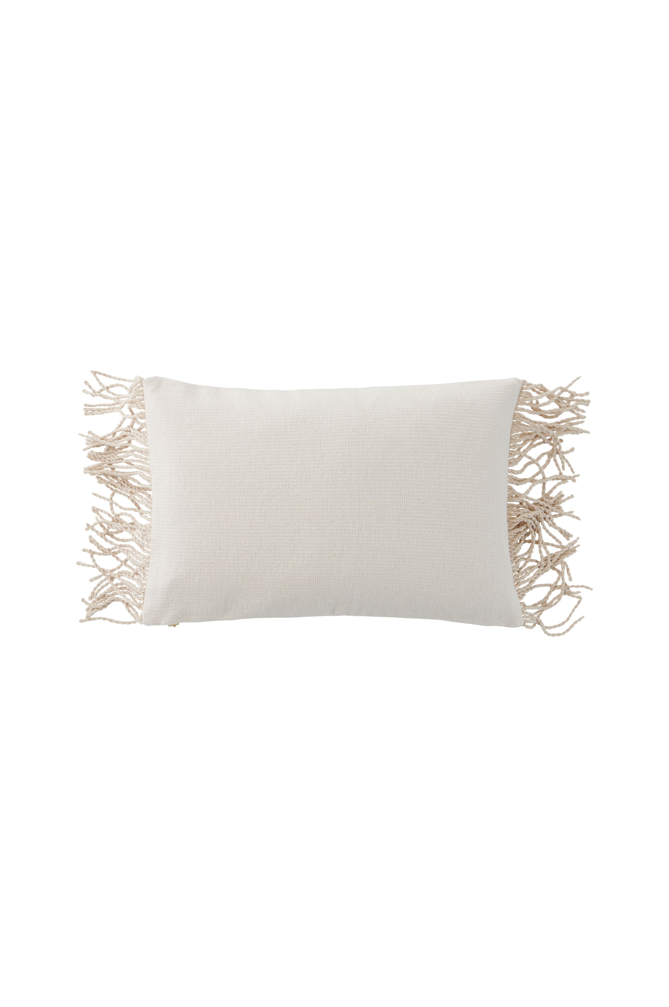 Jay-tyynynpäällinen muuttaa minkä tahansa olohuoneen tai makuuhuoneen karkealla, kudotulla puuvillaisella etupuolella ja puoliksi panamamaisella selkäpuolella. Siinä on metallinen vetoketju helppoa irrottamista varten ja kierrettyjä hapsuja, jotka tuovat tekstuuria.