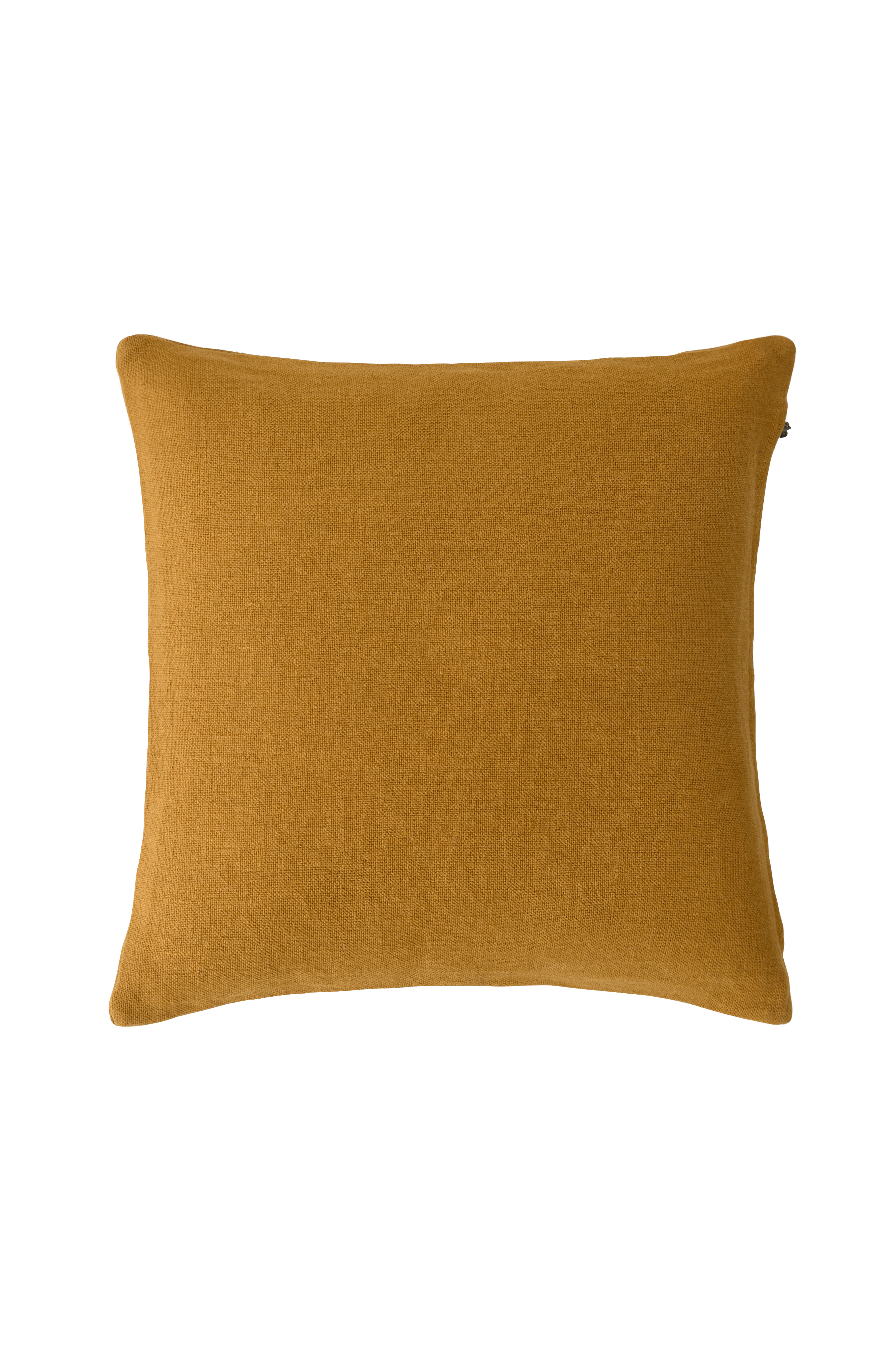 Tyynynpäällinen paksuhkoa, pehmeäksi pesty pellavaa. Vetoketju alareunassa.