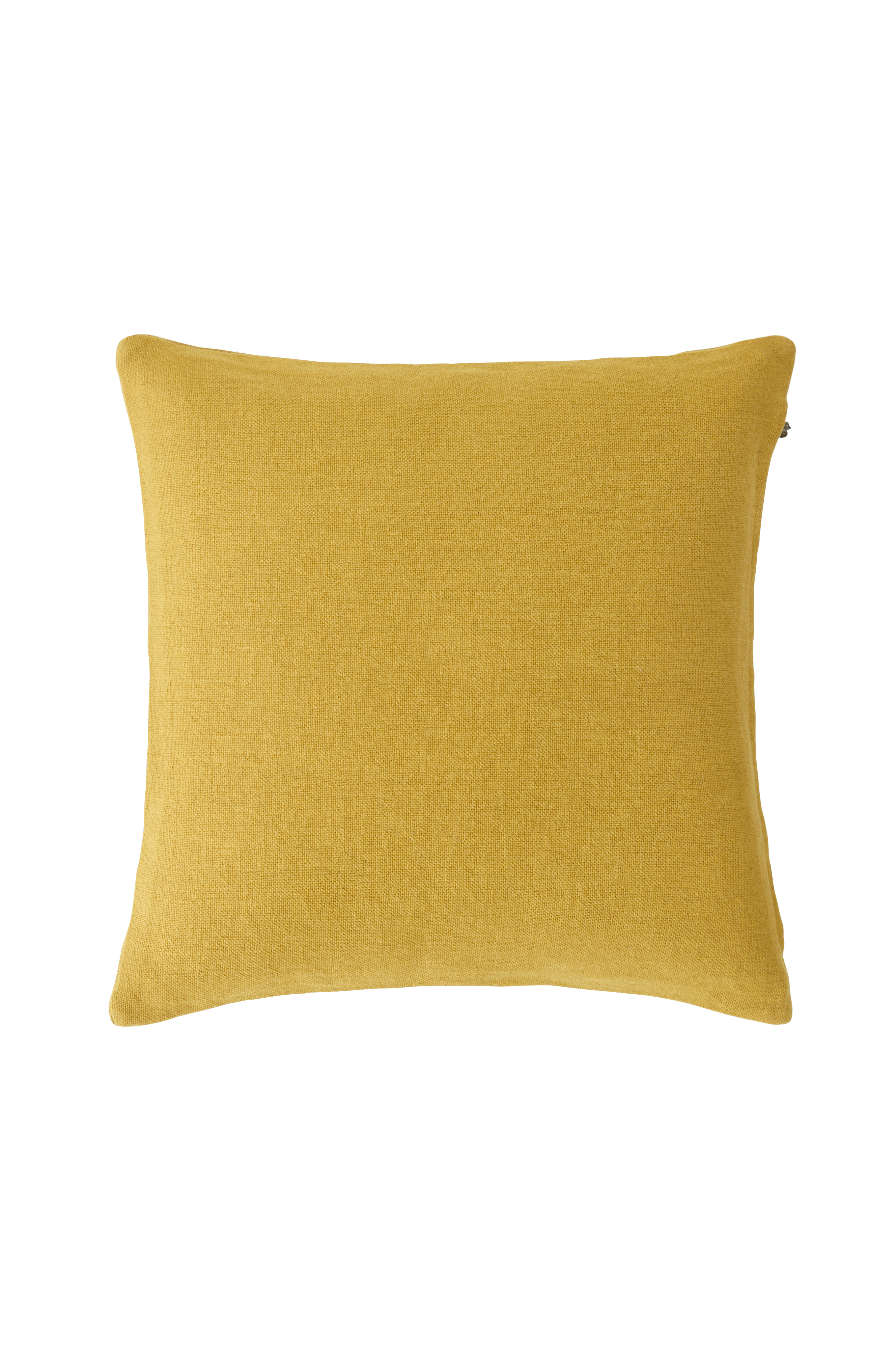 Tyynynpäällinen paksuhkoa, pehmeäksi pesty pellavaa. Vetoketju alareunassa.