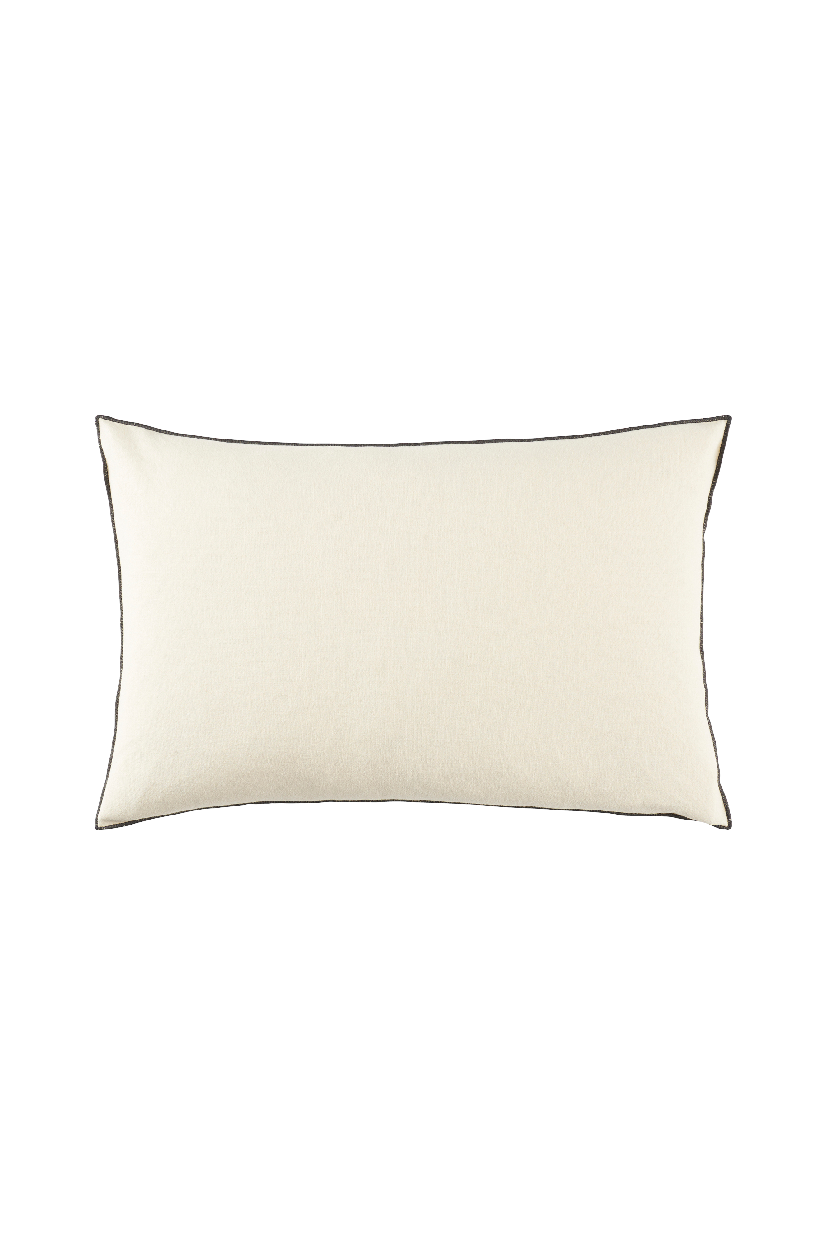 Tyynynpäällinen puuvillaa ja pellavaa. Koristeellinen kontrastivärinen sauma ympäriinsä. Piilovetoketju takana. Koko 40x60 cm.