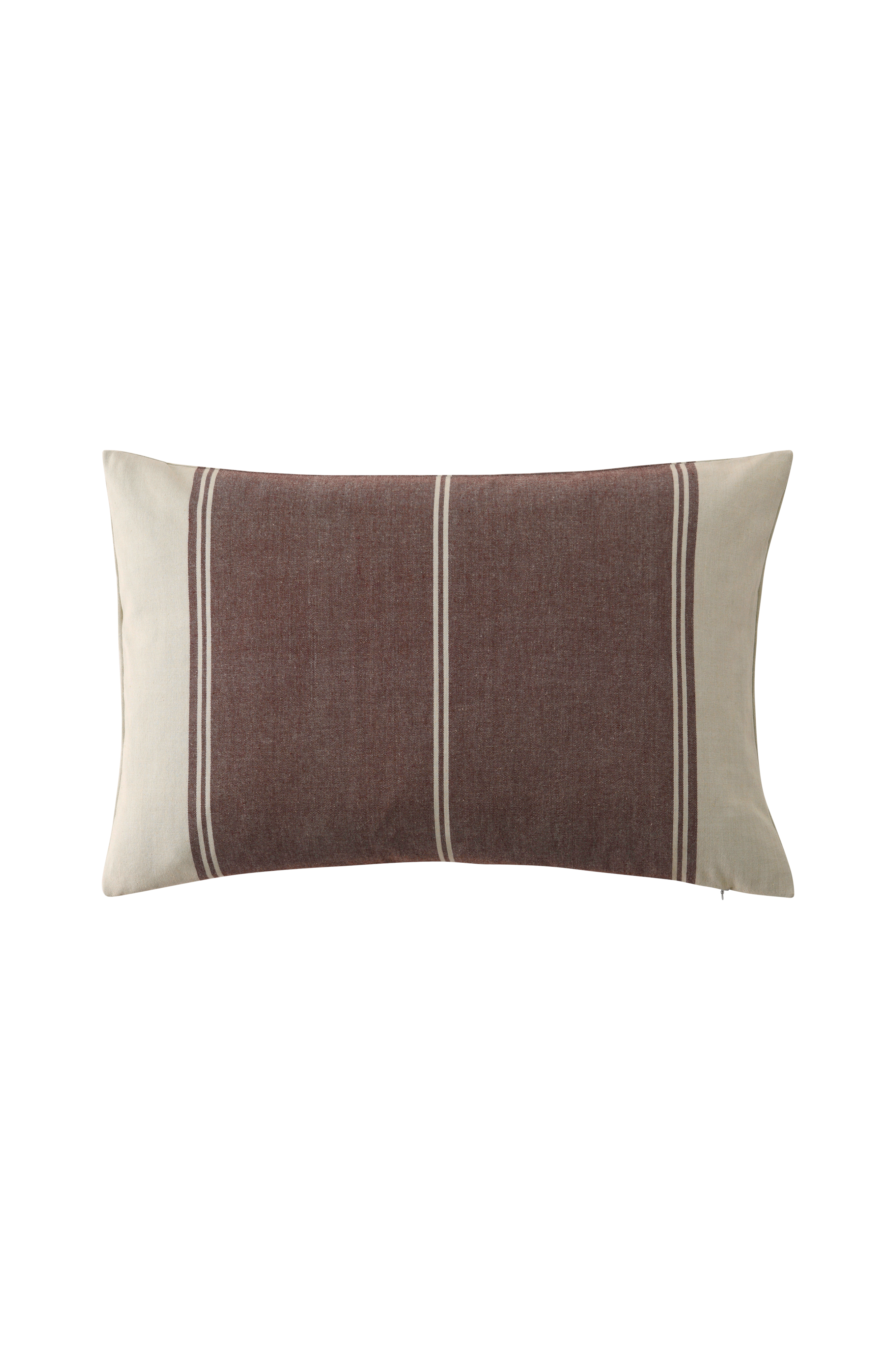 Puuvillainen tyynynpäällinen, jossa lankavärjätyt raidat molemmilla puolilla. Vetoketju alareunassa.