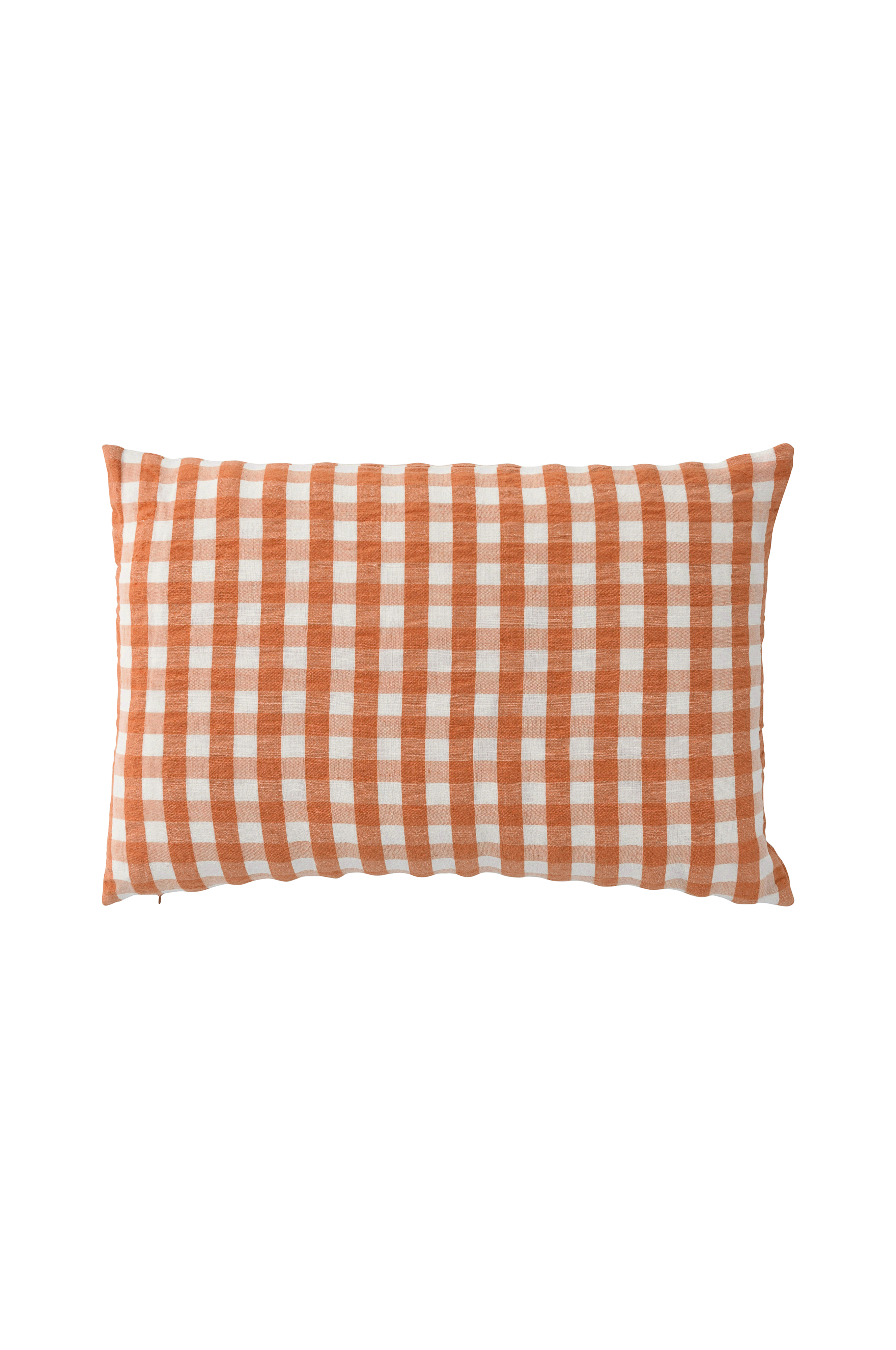 Tyynynpäällinen kevyesti struktuuripintaista kreppikangasta (seersucker). Pestyä puuvilla-hamppusekoitetta, jossa lankavärjätyt ruudut. Piilovetoketju alareunassa.