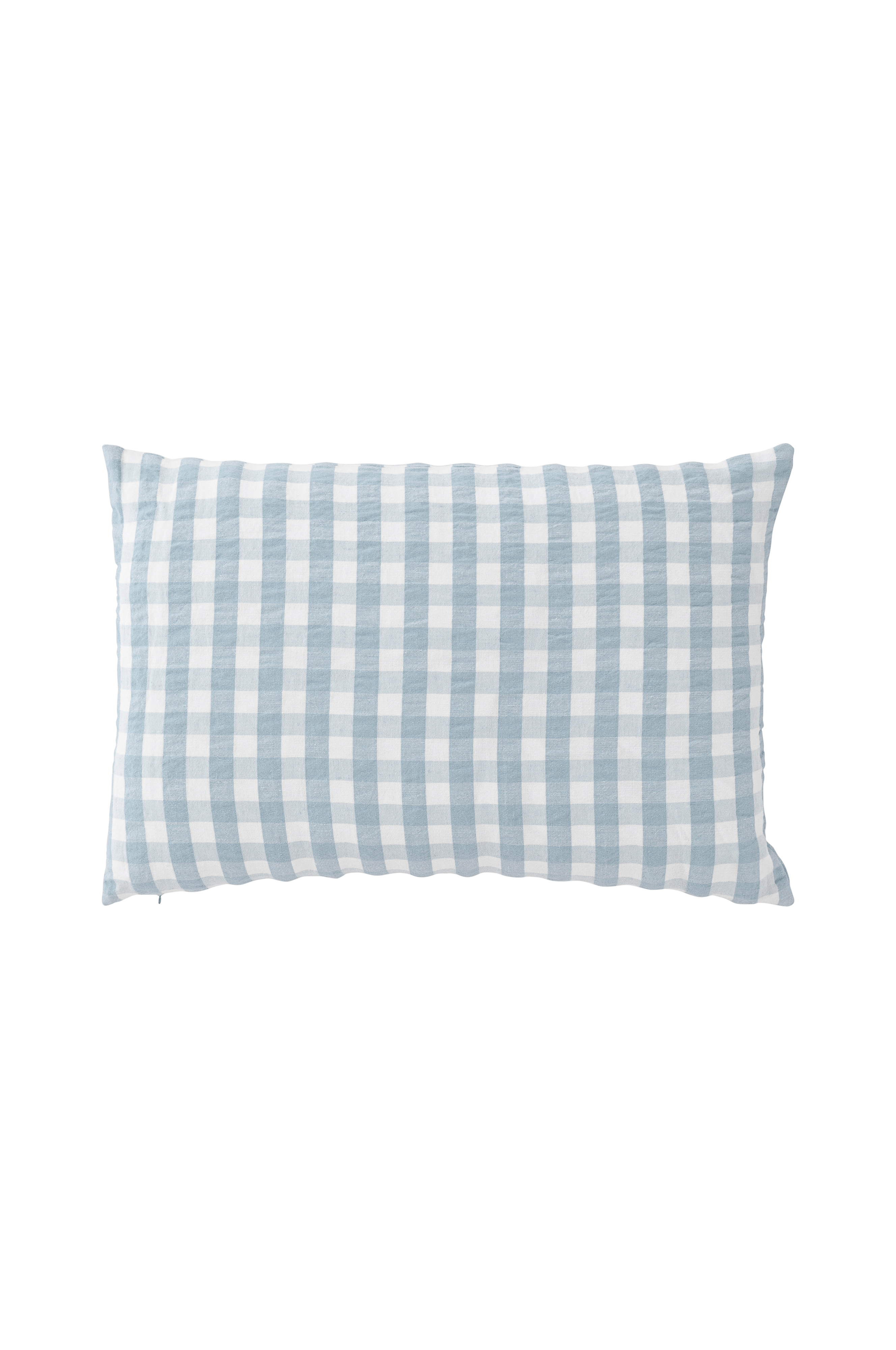 Tyynynpäällinen kevyesti struktuuripintaista kreppikangasta (seersucker). Pestyä puuvilla-hamppusekoitetta, jossa lankavärjätyt ruudut. Piilovetoketju alareunassa.