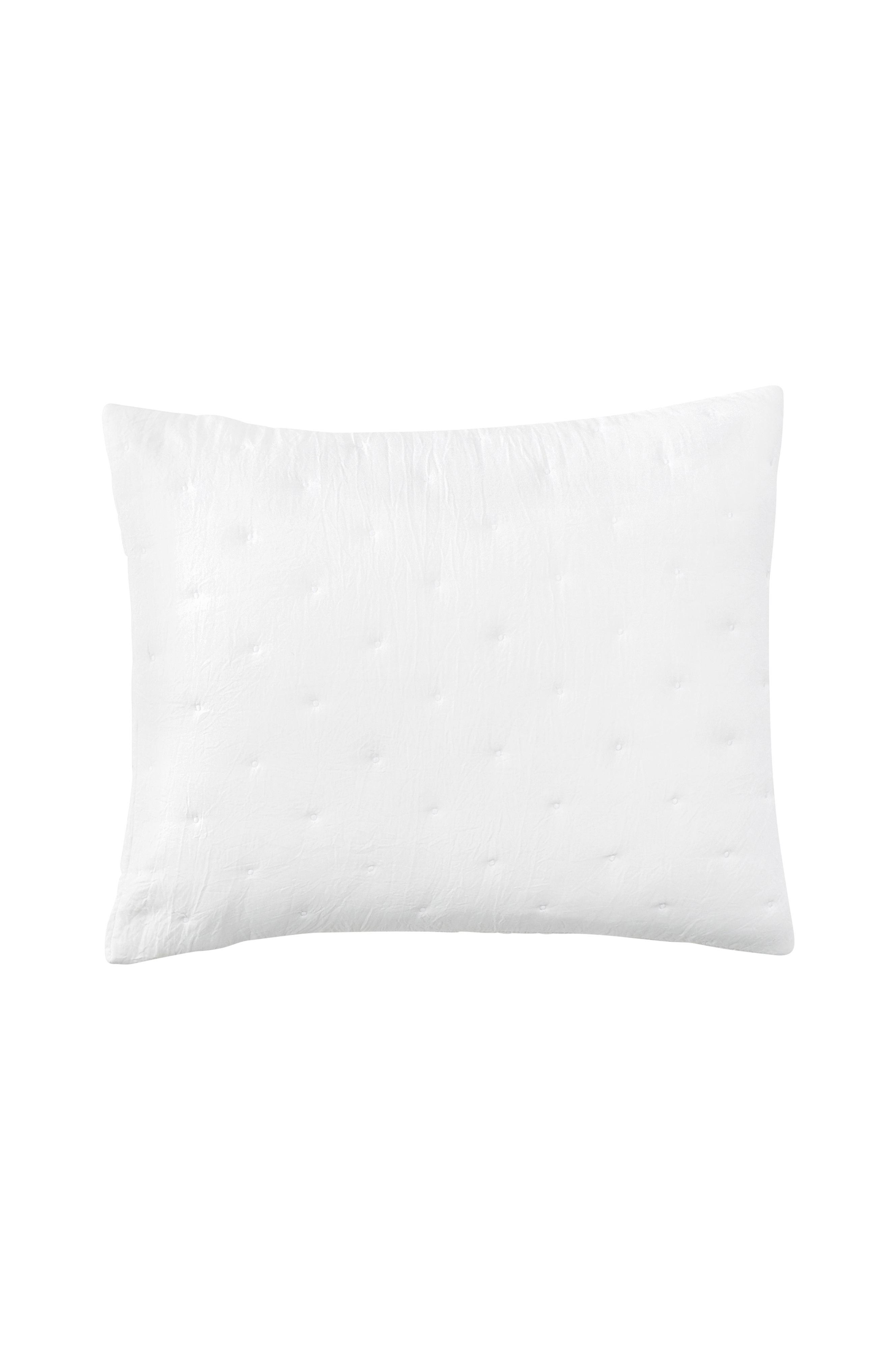 Tikattu tyynynpäällinen pestyä materiaalia, jossa pehmeä mattapinta ja kirjailtuja pilkkuja. Koko 50x60 cm.