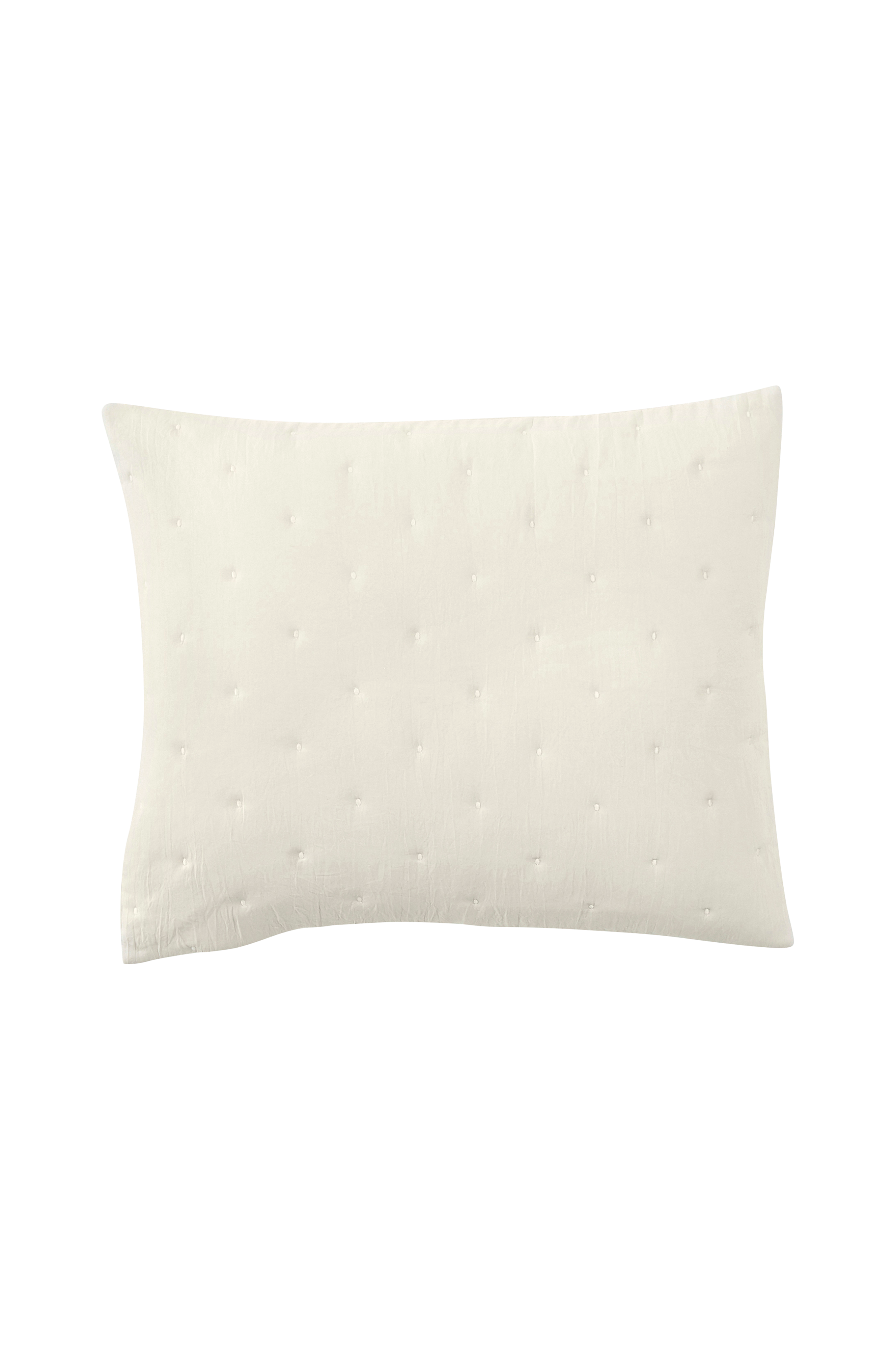 Tikattu tyynynpäällinen pestyä materiaalia, jossa pehmeä mattapinta ja kirjailtuja pilkkuja. Koko 50x60 cm.