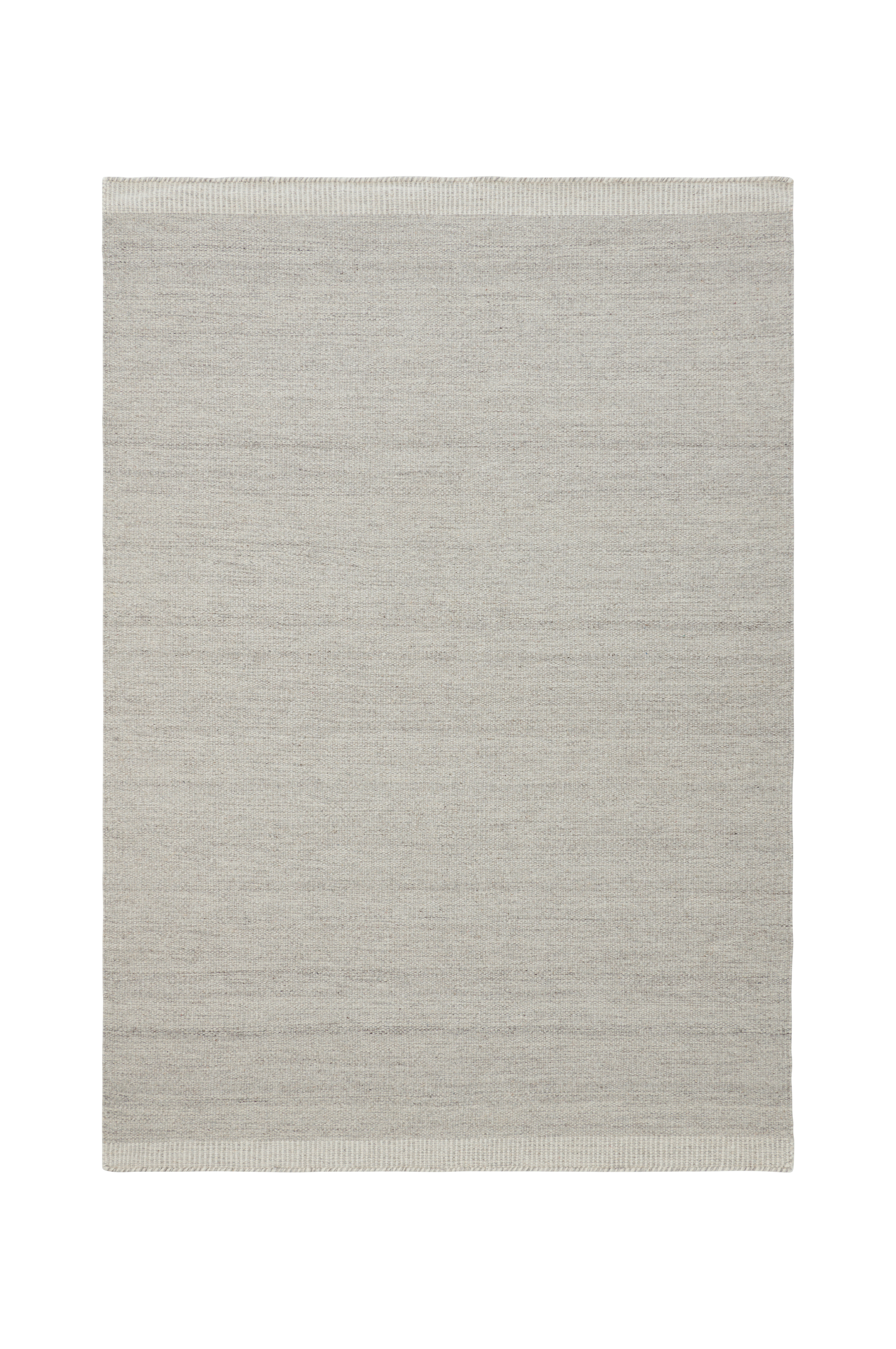 Käsinkudottu villamatto, jossa meleerattu ilme. Raitakuvioinen reuna lyhyillä sivuilla.