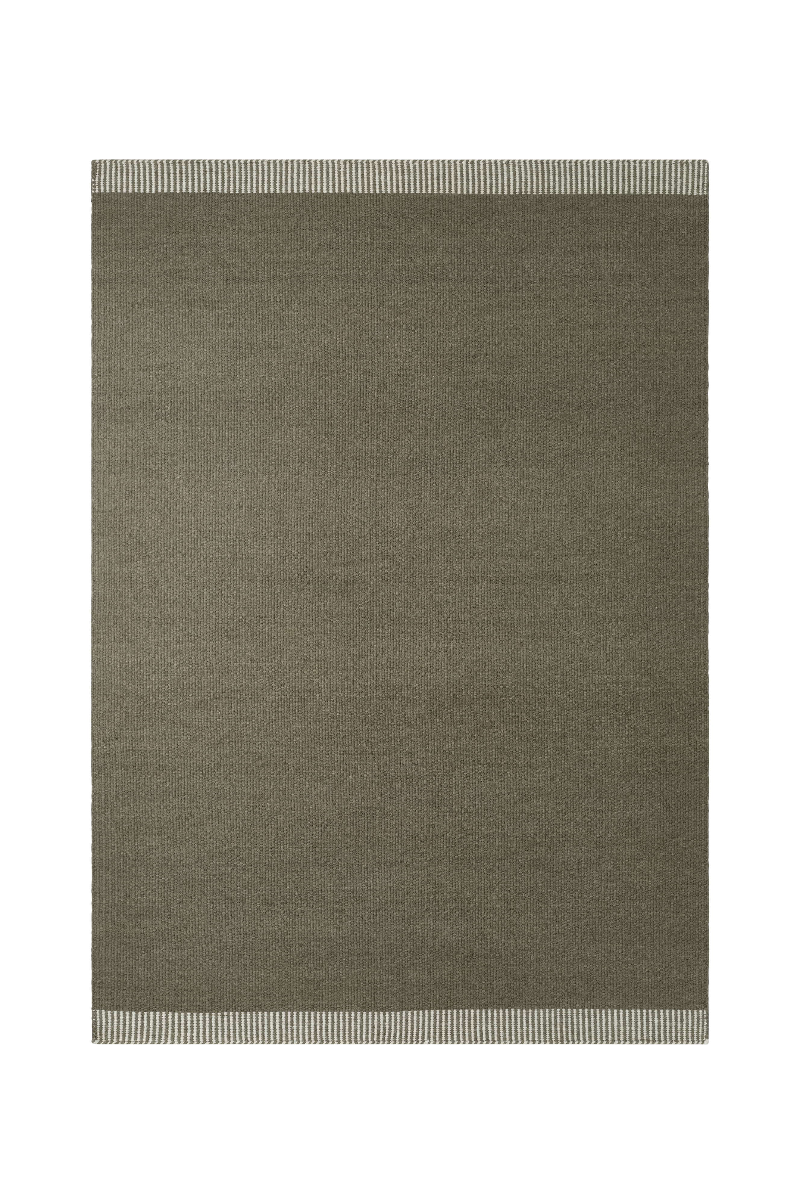 Käsinkudottu villamatto, jossa meleerattu ilme. Raitakuvioinen reuna lyhyillä sivuilla.
