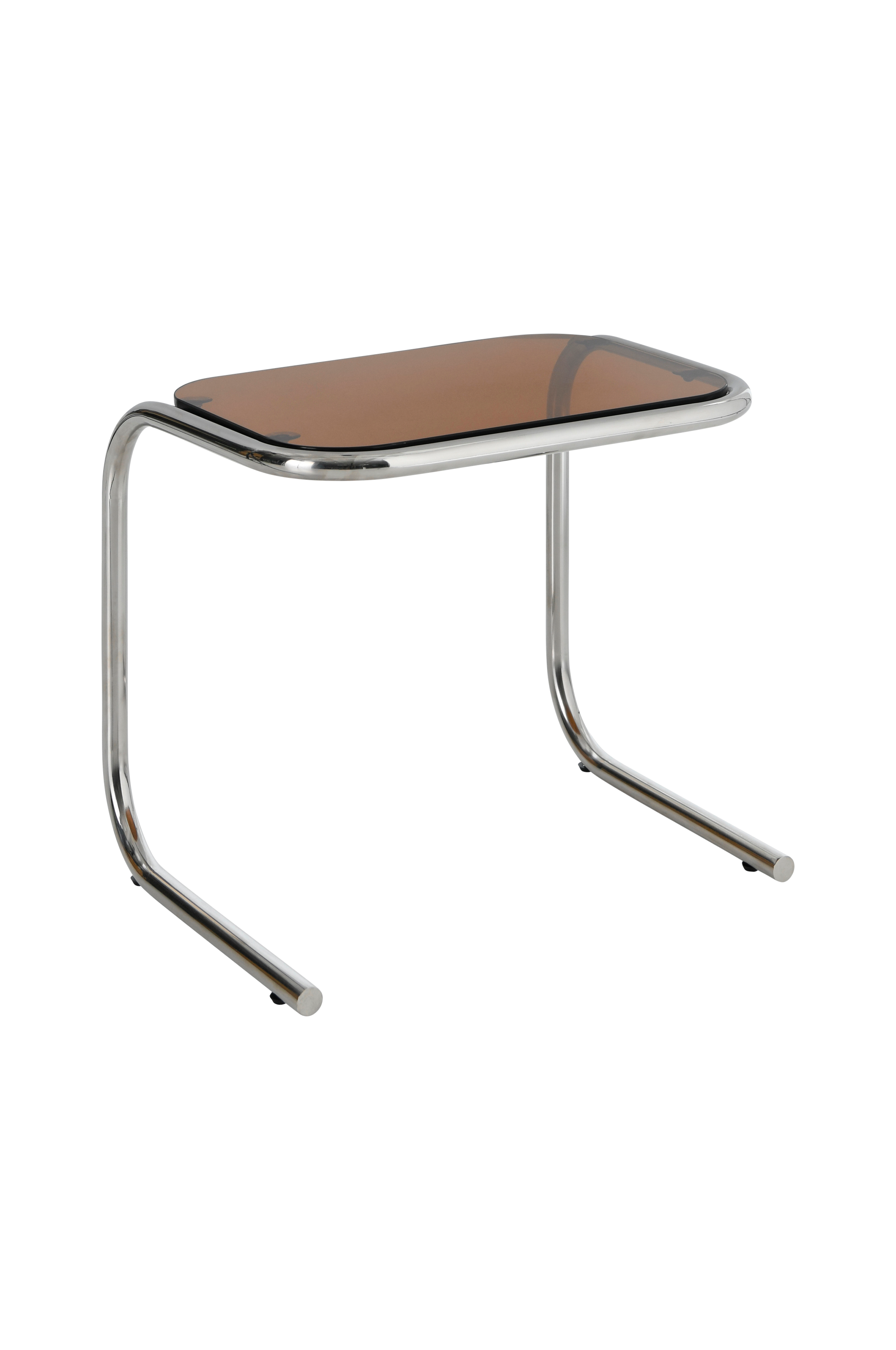 Yöpöytä/sivupöytä, jossa pöytälevy karkaistua lasia. Jalat kiillotettua ruostumatonta terästä. Lasilevy on irrotettava. Enimmäiskuormitus 50 kg.