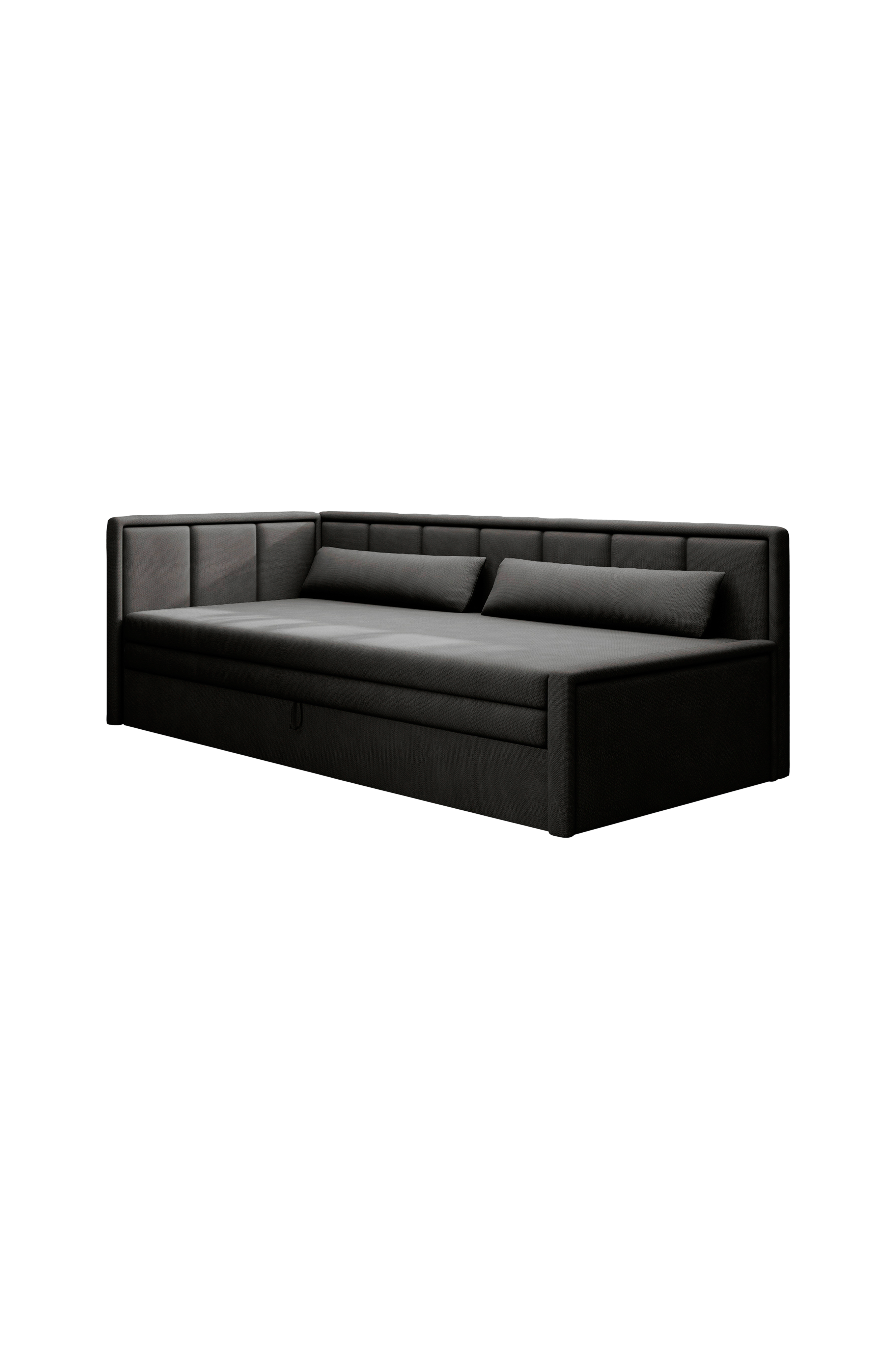 Fulgeo-sohva on ratkaisu, joka on suunniteltu vaativaa, modernia käyttäjää ajatellen. Siksi se tarjoaa minimalistisen ja silmää miellyttävän muodon lisäksi myös toiminnallisen kokoontaittamisjärjestelmän, jonka ansiosta voit nopeasti ja tehokkaasti muuttaa kokonaisuuden mukavaksi vuoteeksi. Tämä tuote ontäydellinen yksiöön, olohuoneeseen, jossa on keittokomero tai teini-ikäisen huoneeseen. Tämän huonekalun istuin on täytetty t2540-polyuretaanivaahdolla ja selkänoja t2130-polyuretaanivaahdolla. Siinä on helppokäyttöinen nukkumatoiminto ja tilava säilytyspaikka vuodevaatteille. Alareunassa oleva säiliö auttaa lakanoiden ja tyynynpäällysteiden välisen sotkun taltuttamisessa, jolloin sängyn valmistamisesta tulee nopeaa ja tehokasta. Fulgeo-mallissa on erittäin tyylikäs verhoilu. Se on valmistettu kokonaan veluurikankaasta, jossa on hienovarainen, punottu rakenne, joka heleästi kimmeltää valossa. Kauniin ulkonäkönsä lisäksi tämä materiaali kestää hyvin kitkaa, hankausta ja pillingiä. Se ei myöskään haalistu valon vaikutuksesta. Voit siis nauttia uuden huonekalusi koskemattomasta viehätyksestä pitkään!