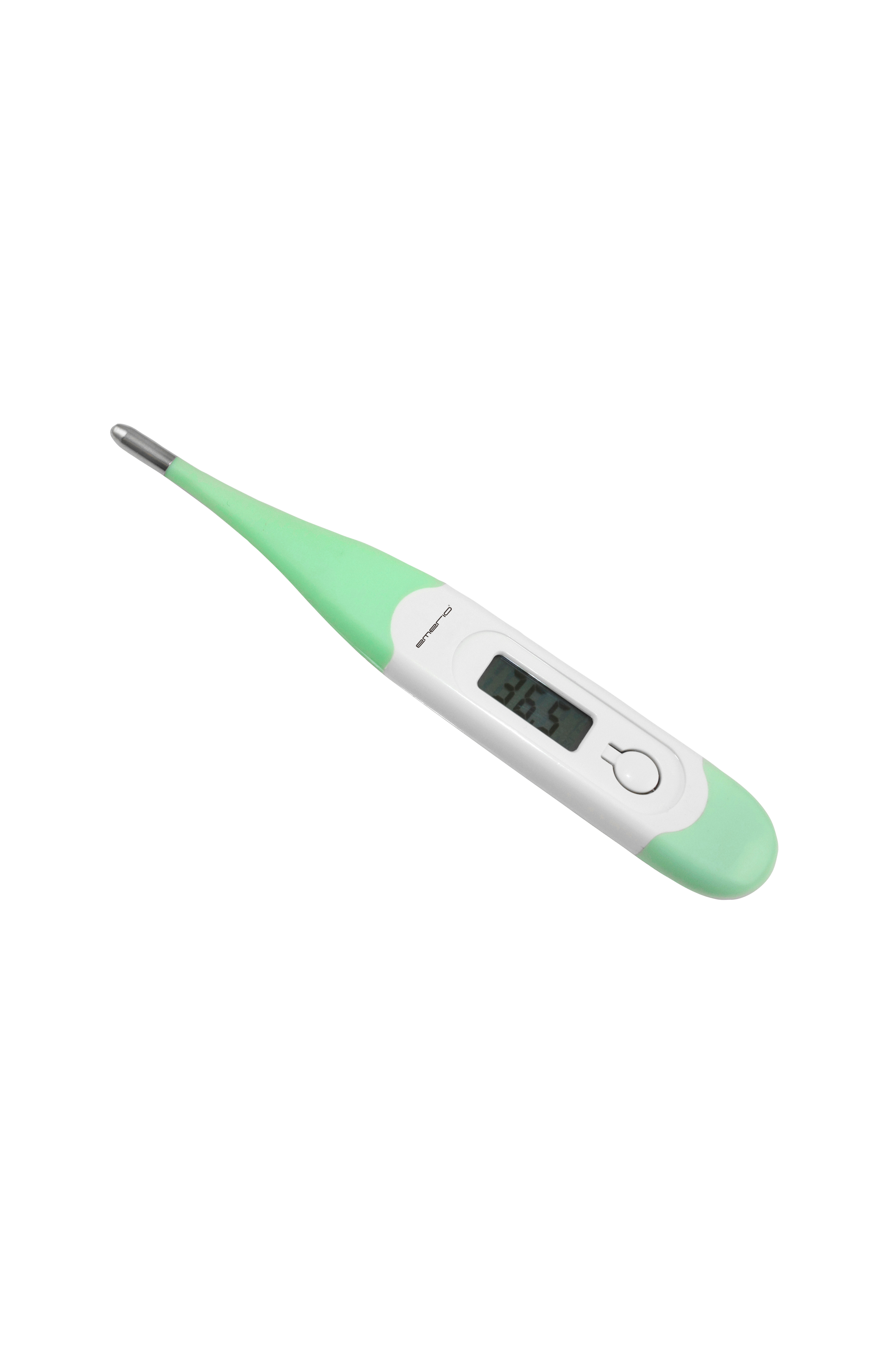 lämpömittari on valkoinen ja vihreä, siinä on yksinkertainen ja joustava perinteinen muotoilu ja se saa virtansa mukana toimitetusta paristosta. Se mittaa lämpötiloja 32 ja 42,9 asteen välillä ja muistaa myös mitatut lämpötilat. Se on myös vedenkestävä ja sammuu automaattisesti, kun sitä ei käytetä.