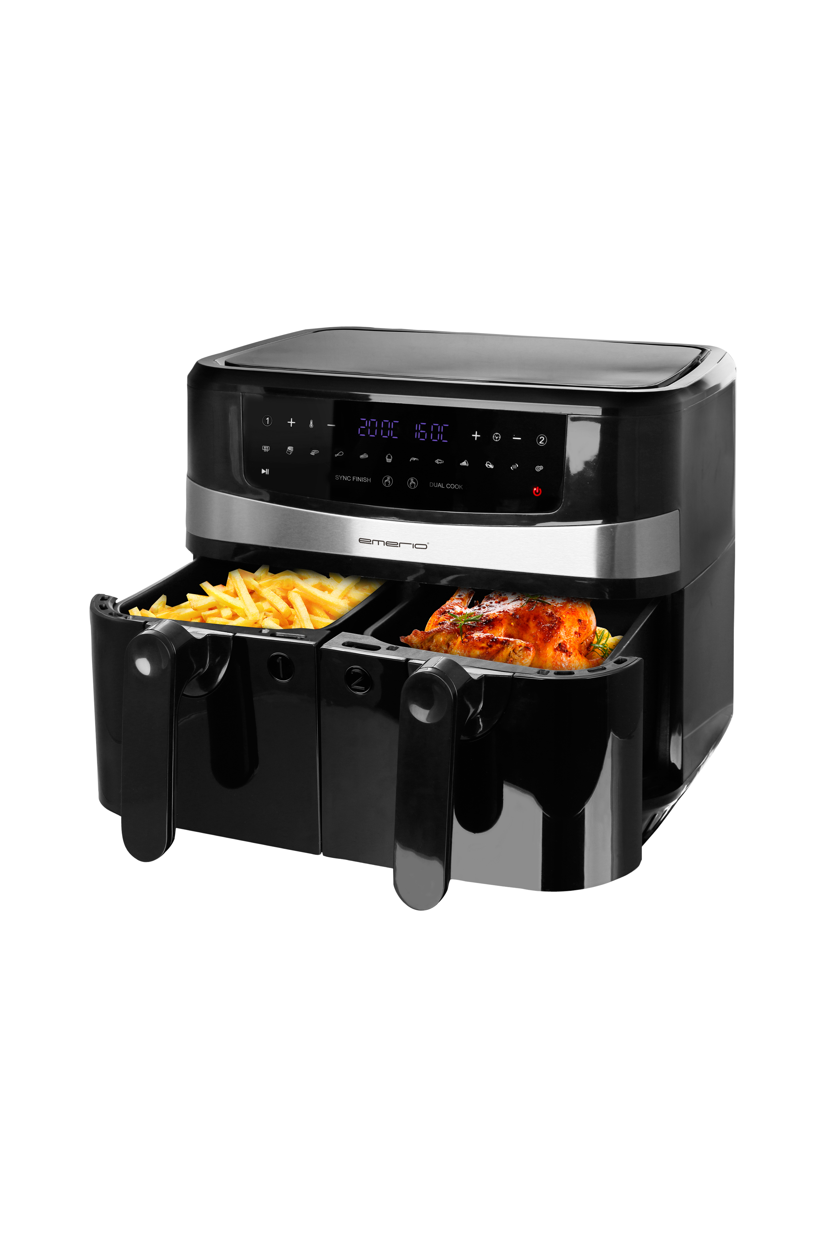 Emerion fiksu ja erittäin tehokas digitaalinen friteerauskeitin valmistaa koko aterian miellyttävän rapeaksi ilman lisättyä öljyä. Aseta koreihin haluamasi ruoka, säädä lämpötilat erikseen tai synkronoi ne ja säädä ajastin. Voit ajastaa koreihin myös eri ajat saadaksesi ruoat valmistumaan samaan aikaan. Friteerauskeitin tekee kaiken työn ja ilmoittaa, kun illallinen on valmis.