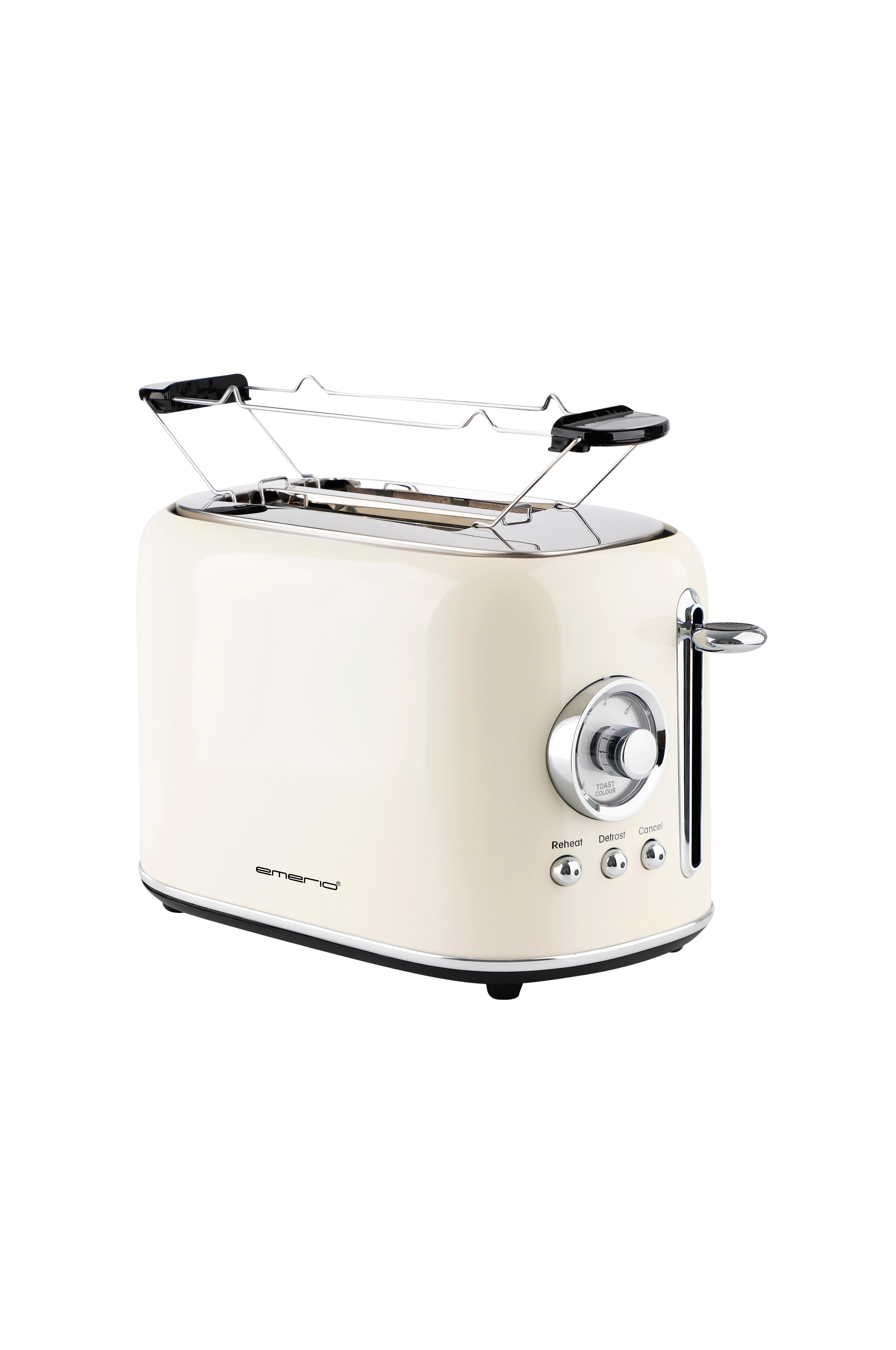 Leivänpaahdin on tyylikkäästi suunniteltu retrotyylillä beigeä ruostumatonta terästä käyttäen. Automaattinen keskitys-, sulatus- ja lämmitystoiminnot tekevät tästä leivänpaahtimesta jotain erityistä. Lisäksi leivänpaahdin on varustettu automaattisella ponnahdusmekanismilla, pysäytyspainikkeella ja ulosvedettävällä murusäiliöllä, joka helpottaa puhdistusta. Kätevät kumijalat pohjassa vakauttavat leivänpaahtimen asennon.