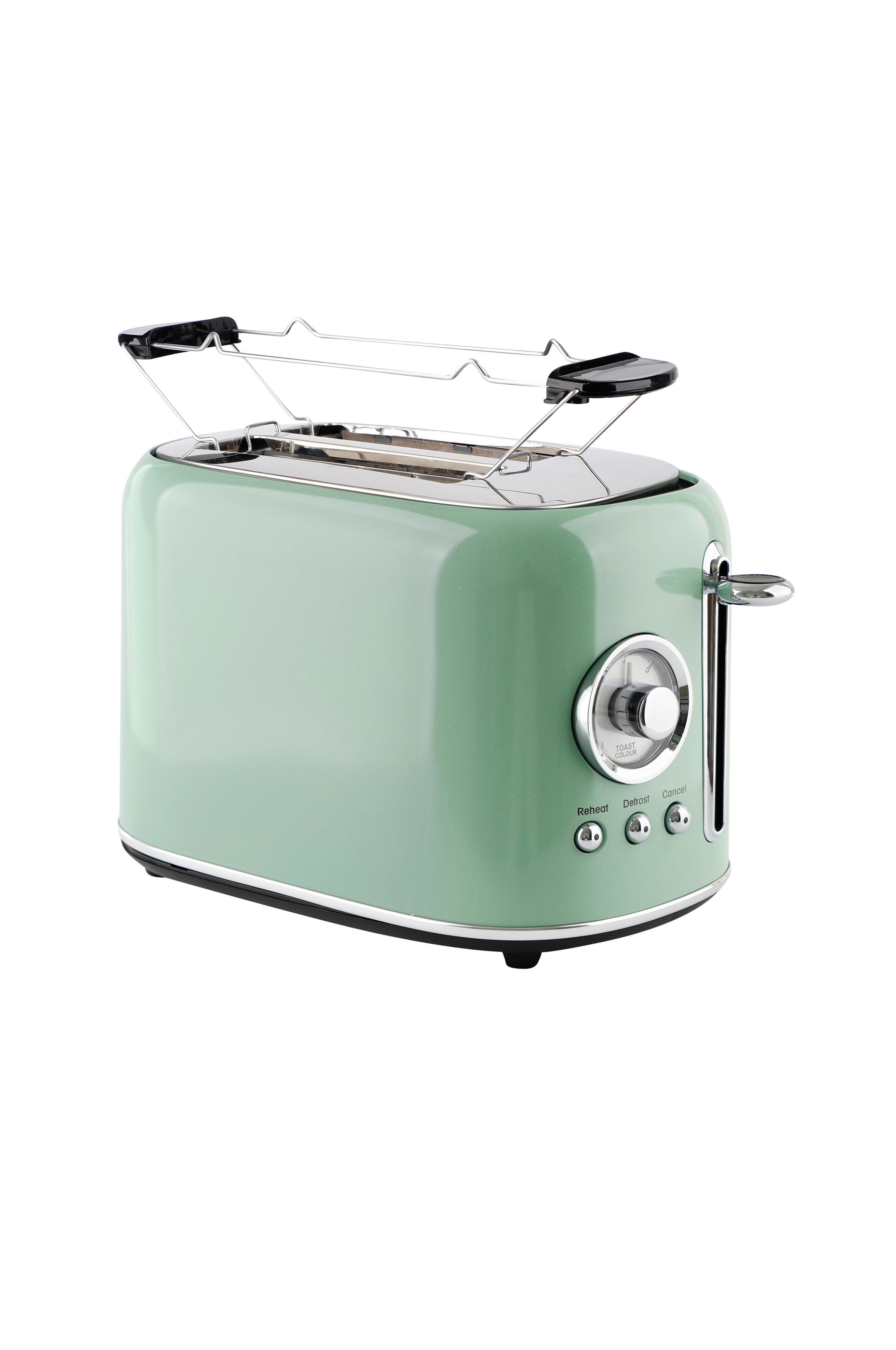 Leivänpaahdin on tyylikkäästi suunniteltu retrotyylillä beigeä ruostumatonta terästä käyttäen. Automaattinen keskitys-, sulatus- ja lämmitystoiminnot tekevät tästä leivänpaahtimesta jotain erityistä. Lisäksi leivänpaahdin on varustettu automaattisella ponnahdusmekanismilla, pysäytyspainikkeella ja ulosvedettävällä murusäiliöllä, joka helpottaa puhdistusta. Kätevät kumijalat pohjassa vakauttavat leivänpaahtimen asennon.