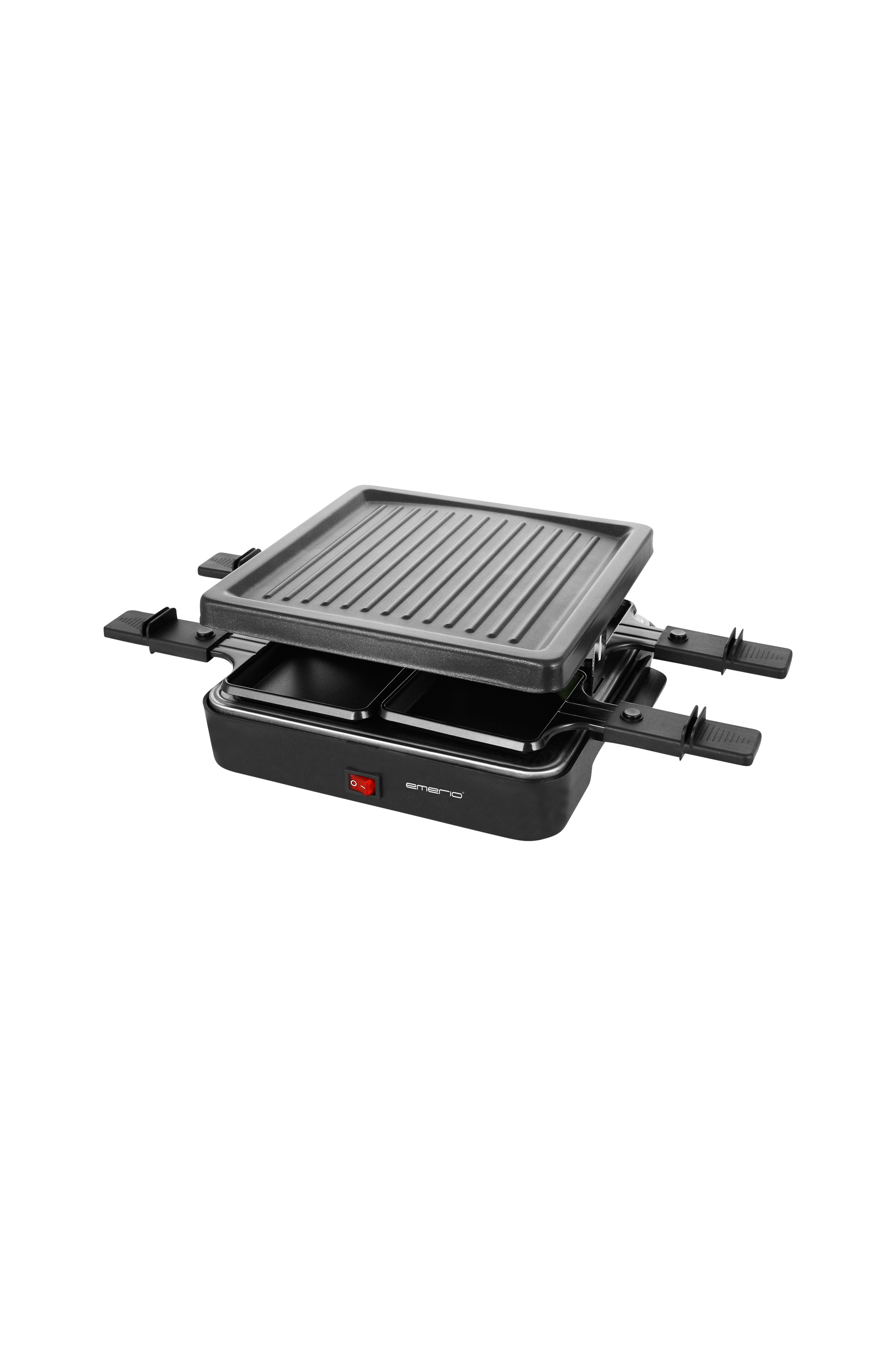 muotoilu on tyylikästä mustaa, ja siinä on 21 x 21 cm:n käytännöllinen grillauspinta sekä 4 paikkaa grillilapioille ja sulatustarvikkeille. Tarttumaton pinnoite tekee sekä grillaamisesta että sulattamisesta sujuvaa, ja grillauslapioissa on käytännölliset kahvat, joista voi pitää kiinni. Raclette-grilli on myös erittäin helppo puhdistaa ja vakaat liukumattomat jalat pitävät grillin tukevasti paikallaan käytön aikana.