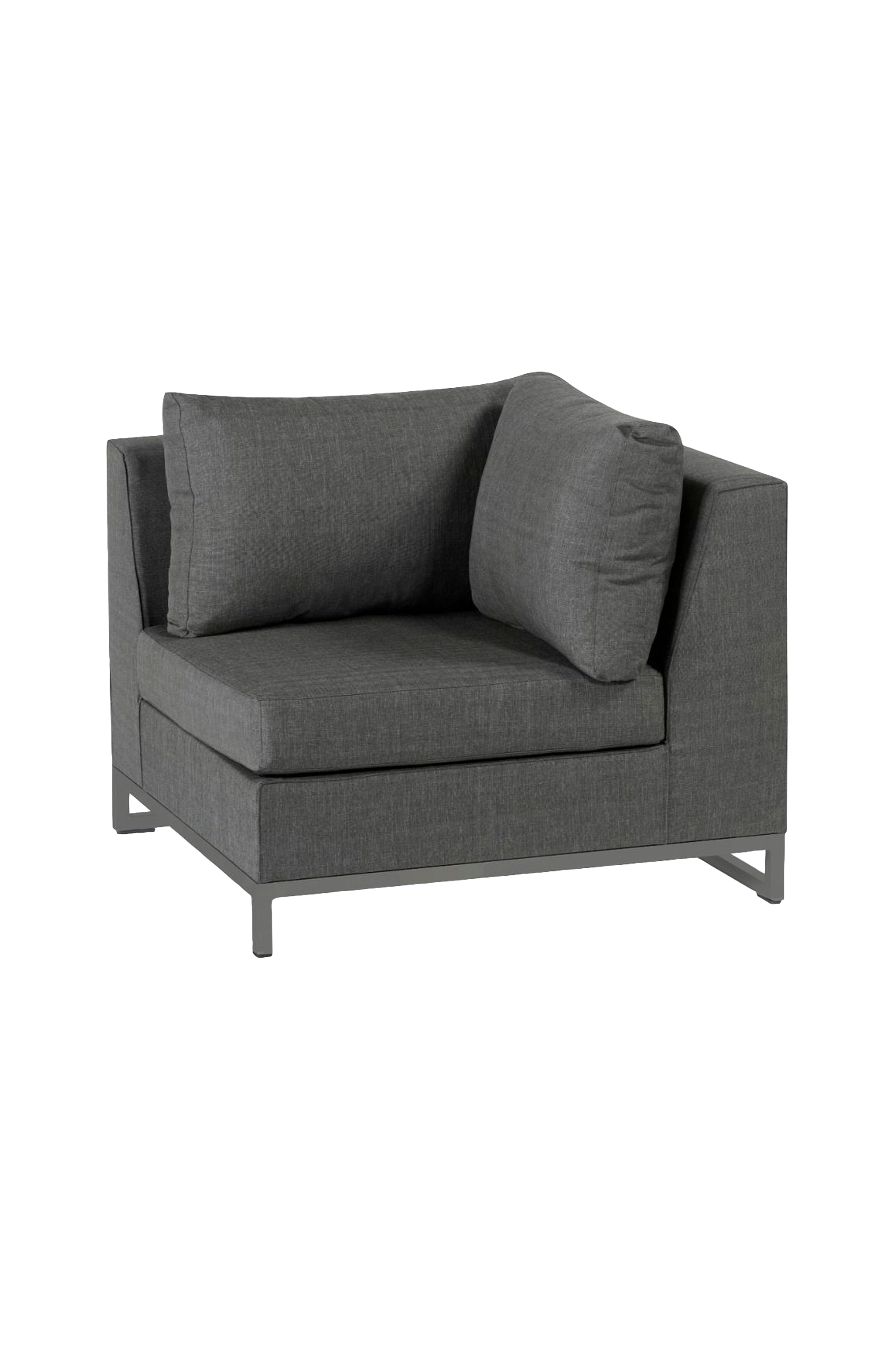 Nauti ylellisyydestä Rhodes-mallistolla. Sarja koostuu erilaisista erillisistä moduuleista. Siten voit koostaa sarjan haluamallasi tavalla. Rhodes-kulmamoduuli on valmistettu laadukkaista, UV-kestävistä, vahvoista ja miellyttävistä materiaaleista. Alumiinirungossa on nopeasti kuivuva vaahtomuovitäyte. Tämä materiaali läpäisee vettä ja suojaa kalusteita lahoamiselta ja homeelta. Kestävä, joustava Nanotex®-kangas varmistaa, että suurin osa vedestä ei läpäise kangasta. Kankaan läpi pääsevä vesi siirtyy nopeasti pois nopeasti kuivuvan vaahtomuovitäytteen läpi. Voit siis jättää tuotteen ulos koko puutarhakalustesesongin ajaksi.