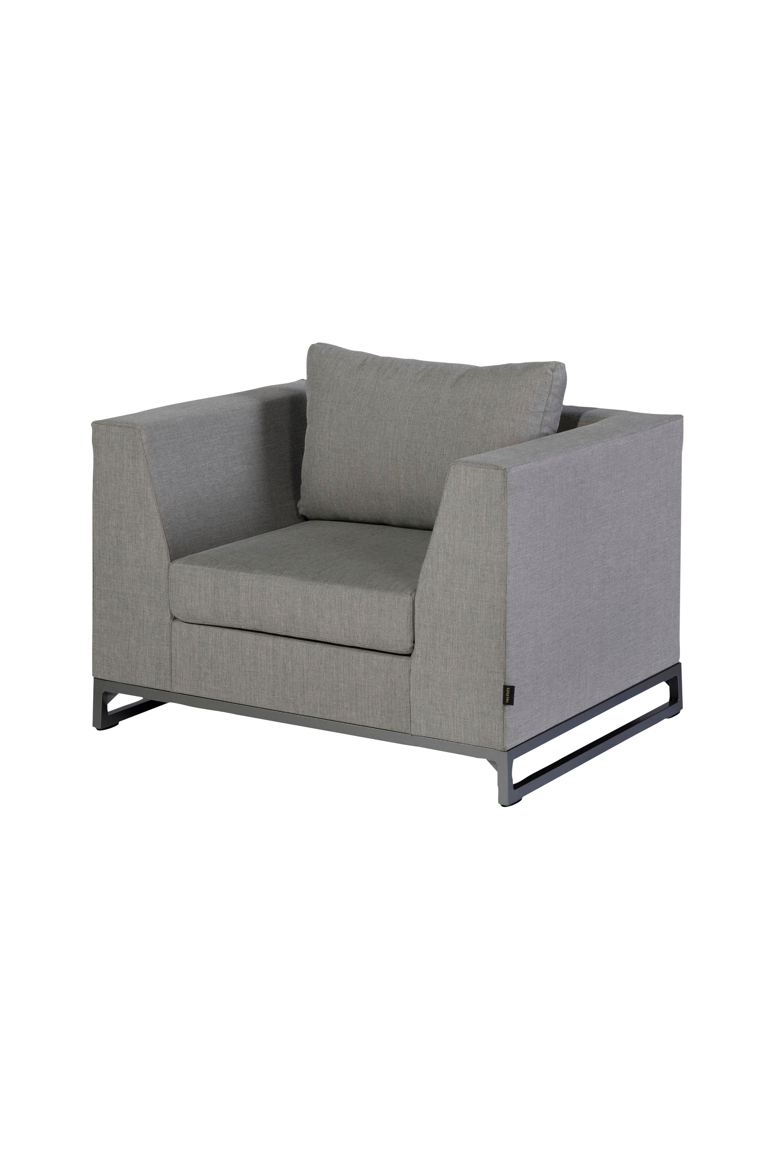 Nauti ylellisyydestä Rhodes-mallistolla. Sarja koostuu erilaisista erillisistä moduuleista. Siten voit koostaa sarjan haluamallasi tavalla. Rhodes-nojatuoli on valmistettu laadukkaista, UV-kestävistä, vahvoista ja miellyttävistä materiaaleista. Alumiinirungossa on nopeasti kuivuva vaahtomuovitäyte. Tämä materiaali läpäisee vettä ja suojaa kalusteita lahoamiselta ja homeelta. Kestävä, joustava Nanotex®-kangas varmistaa, että suurin osa vedestä ei läpäise kangasta. Kankaan läpi pääsevä vesi siirtyy nopeasti pois nopeasti kuivuvan vaahtomuovitäytteen läpi. Siksi tuotetta voi pitää ulkona koko puutarhakalustesesongin ajan.