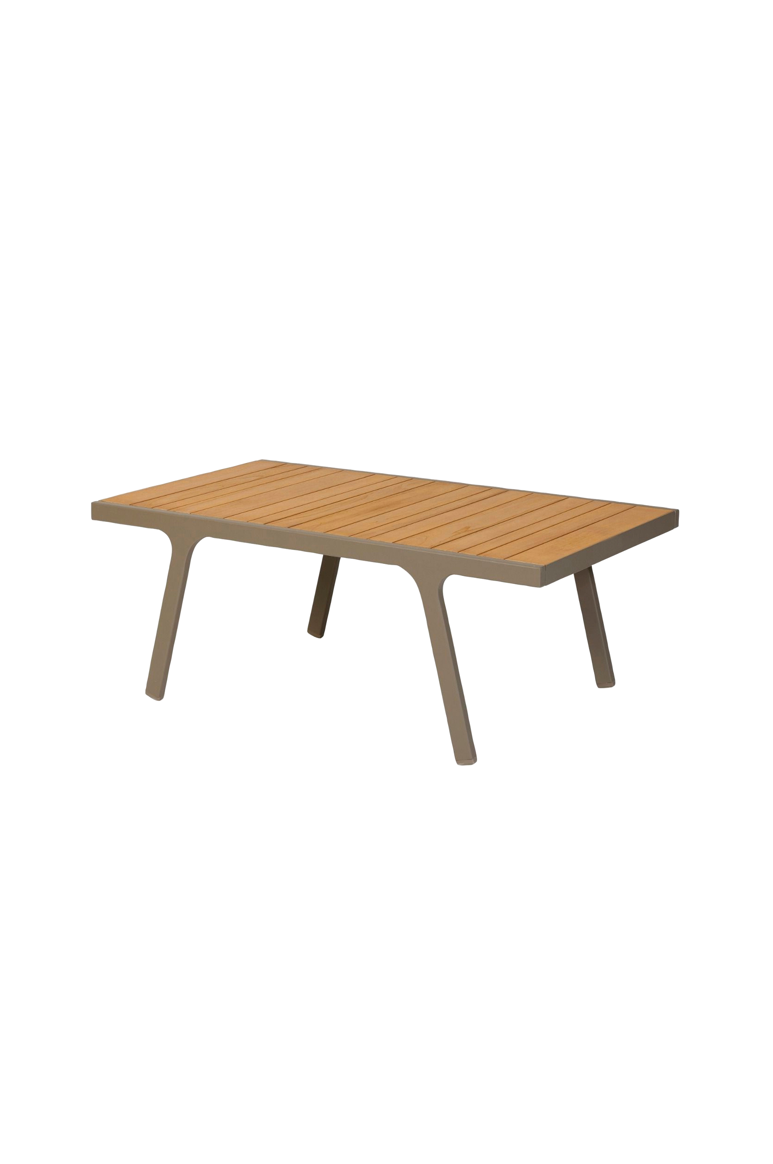 Orlando-sohvapöytä tiikkiä. Sohvapöytä on kaunis yhdessä Orlando-kulmasetin tai 3:n istuttavan sohvan ja loungetuolin kanssa. Orlando-sohvapöydän runko on alumiinia ja pöytälevy FSC®-sertifioitua tiikkiä.