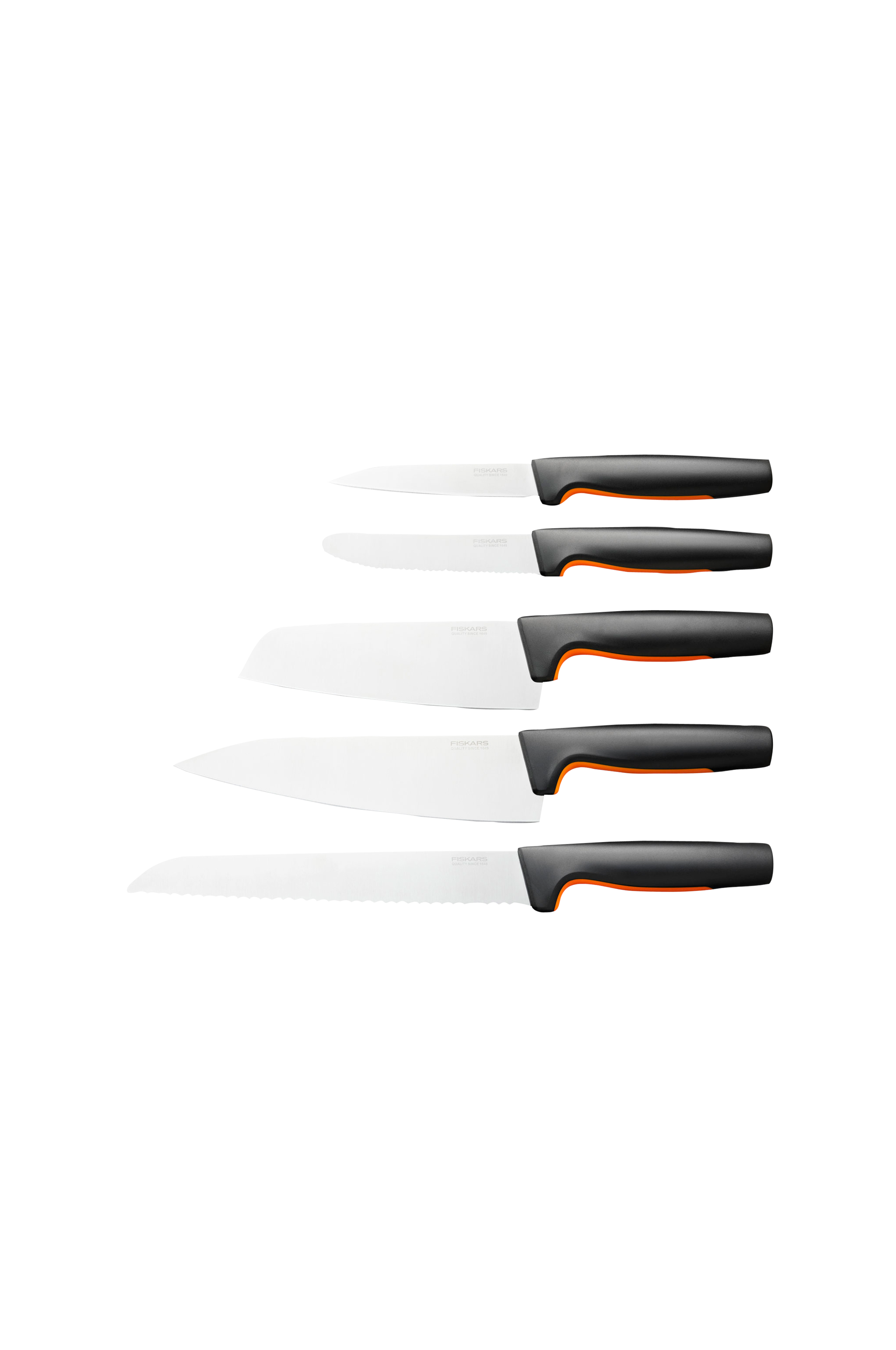 Aloitussetti, jossa viisi yleisintä keittiöveistä.