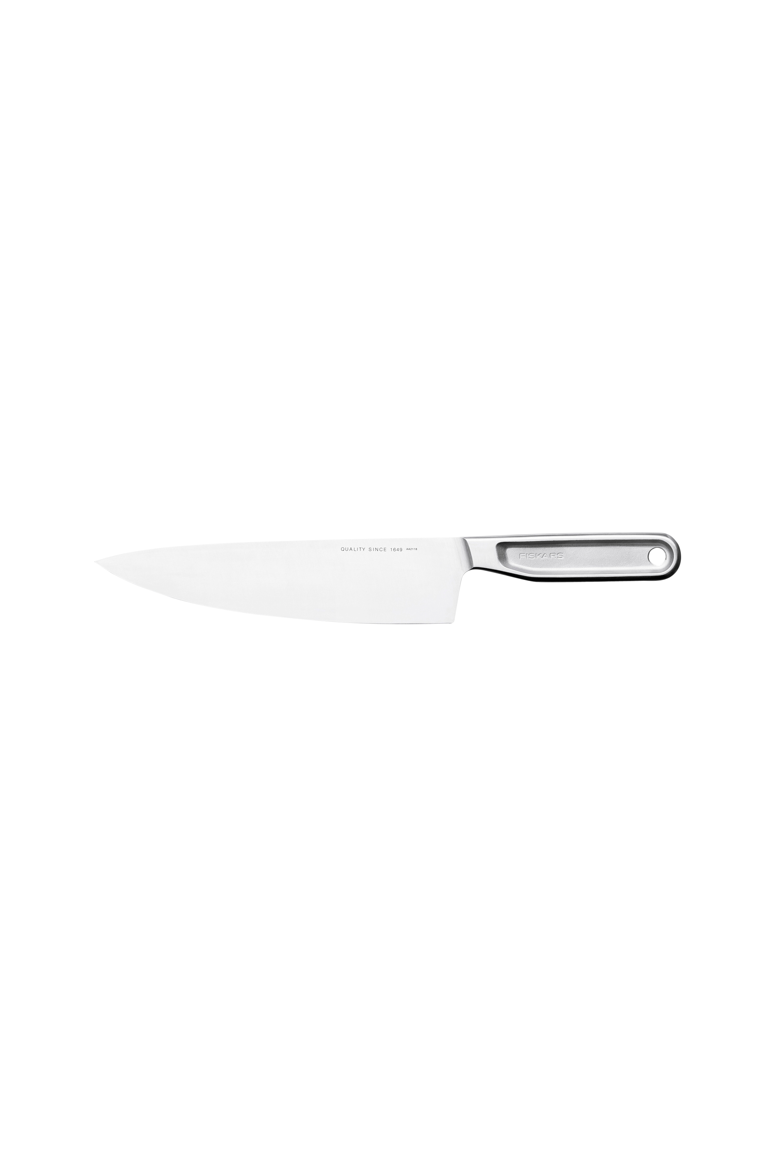 Erinomaisen suorituskyvyn ja pitkän käyttöiän varmistavasta laadukkaasta ruostumattomasta teräksestä valmistettu iso kokkiveitsi.
